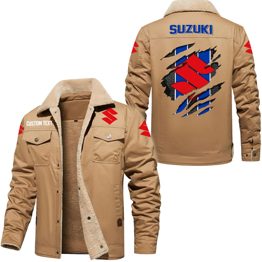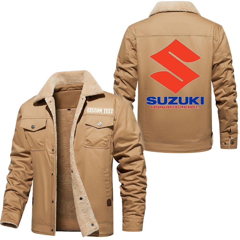 Suzuki Logo Custom Name Cargo Fleece Lined Cotton Jacket Stylish Warm Personalized Outerwear