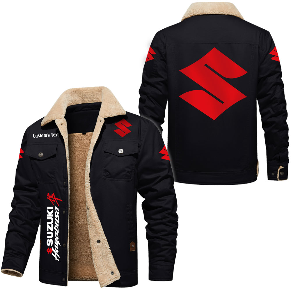 Suzuki Hayabusa Logo Custom Text Cargo Fleece Lined Cotton Jacket