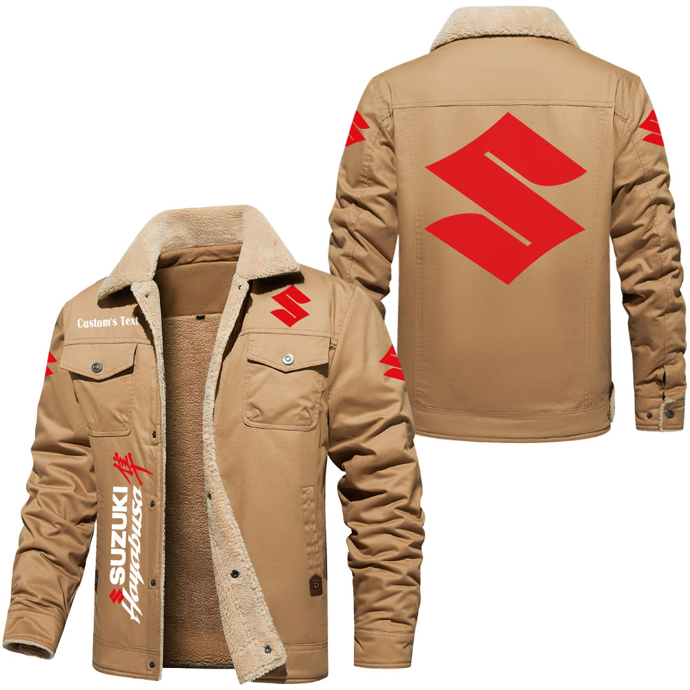 Suzuki Hayabusa Logo Custom Name Cargo Fleece Lined Cotton Jacket Stylish Warm Personalized Outerwear