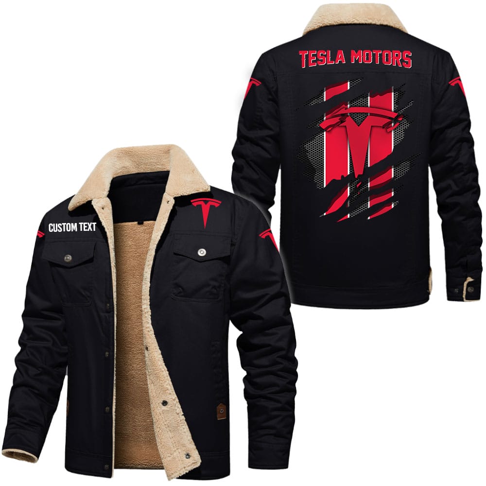 Tesla Motors Logo Custom Name Cargo Fleece Lined Cotton Jacket A Real Man Who Loves Personalized Outerwear