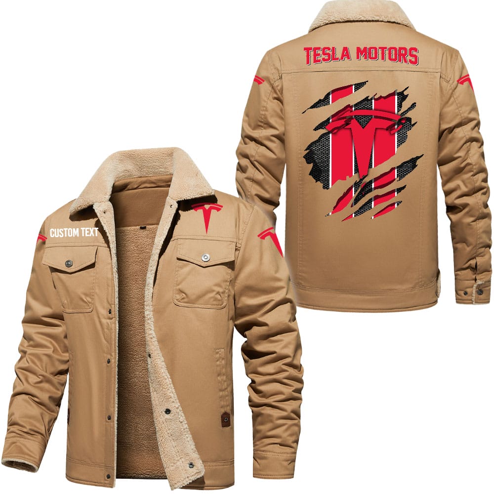 Tesla Motors Logo Custom Name Cargo Fleece Lined Cotton Jacket