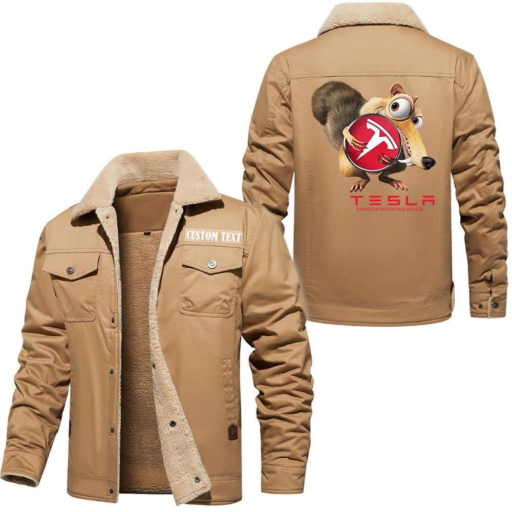 Tesla Motors Logo Custom Name Cargo Fleece Lined Cotton Jacket Scrat Ice Age Design Personalized Outerwear