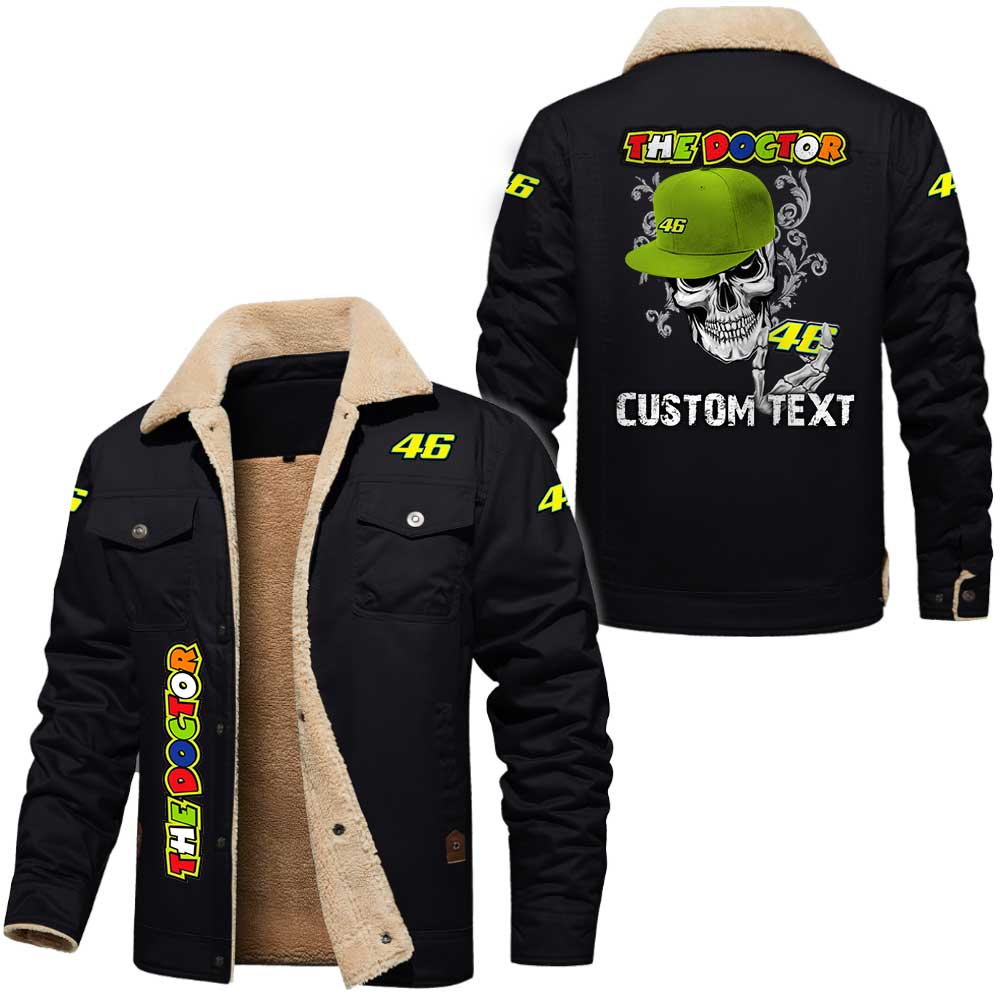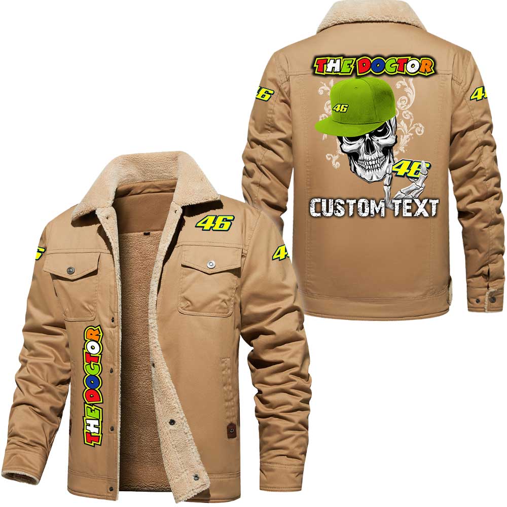 The Doctor 46 Skull Logo Custom Text Cargo Fleece Lined Cotton Jacket