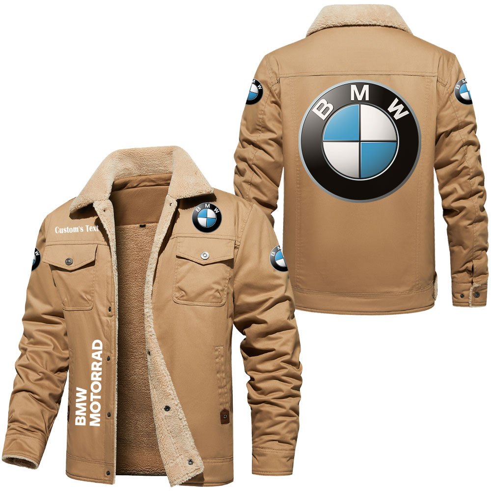 Bmw Motorcycles Logo Custom Text Cargo Fleece Lined Cotton Jacket