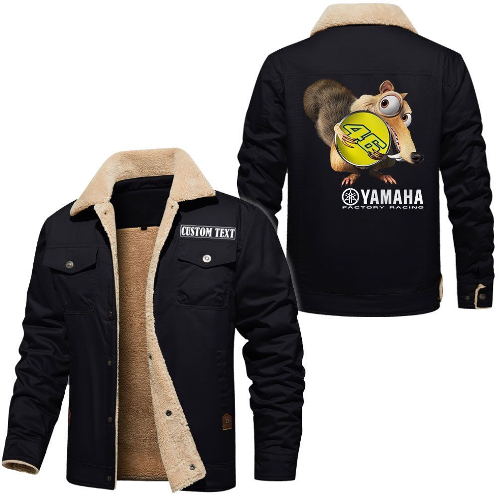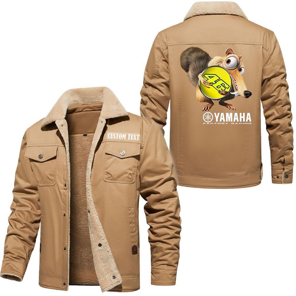 Valentino Rossi 46 Logo Custom Name Cargo Fleece Lined Cotton Jacket Scrat Ice Age Design Personalized Outerwear