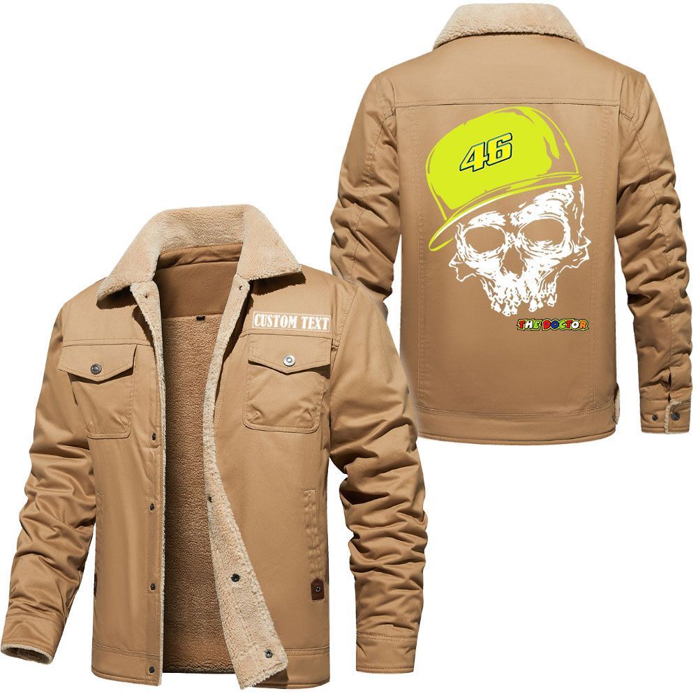 Valentino Rossi 46 Logo Custom Name Cargo Fleece Lined Cotton Jacket Personalized Outerwear with Skull Design