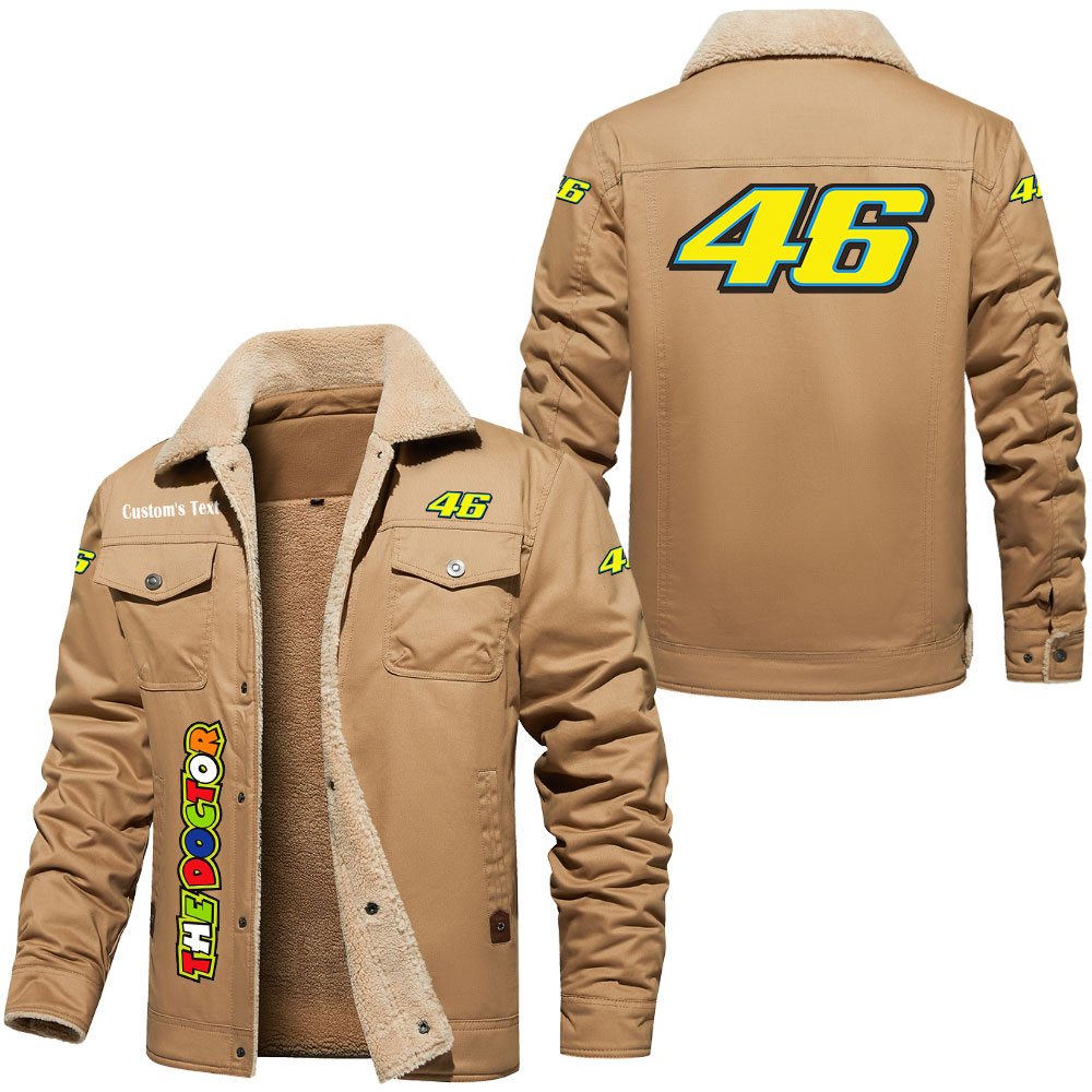 Valentino Rossi 46 Logo Custom Text Cargo Fleece Lined Cotton Jacket