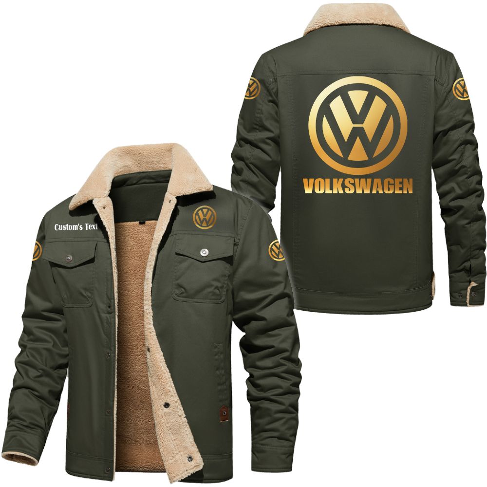 Volkswagen Group Golden Logo Custom Cargo Fleece Lined Cotton Jacket Army Green