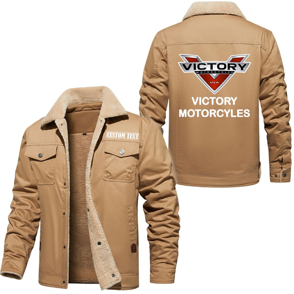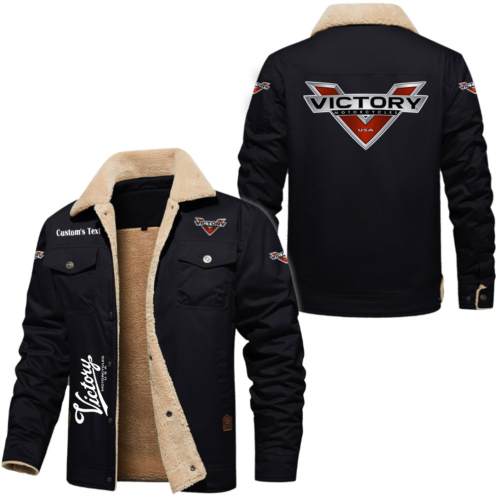 Victory Motorcycles Logo Custom Text Cargo Fleece Lined Cotton Jacket