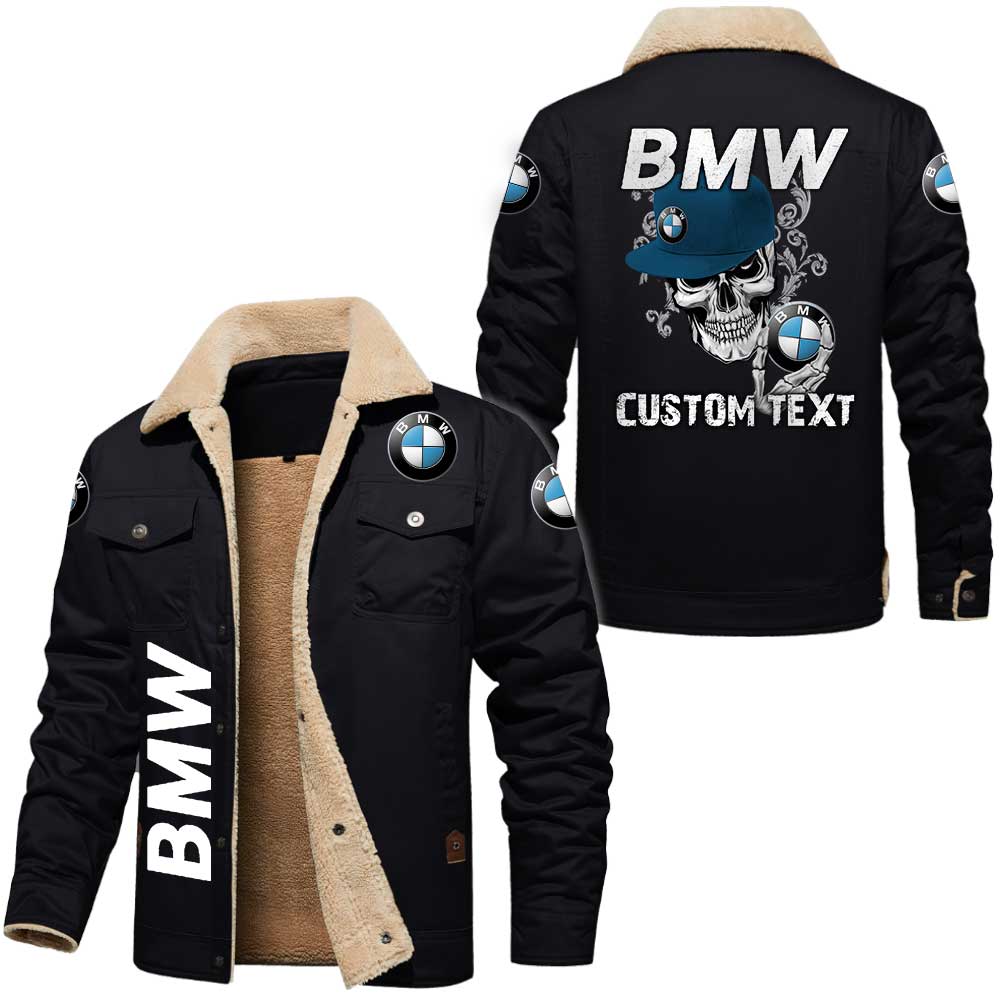 Bmw Skull Logo Custom Text Cargo Fleece Lined Cotton Jacket