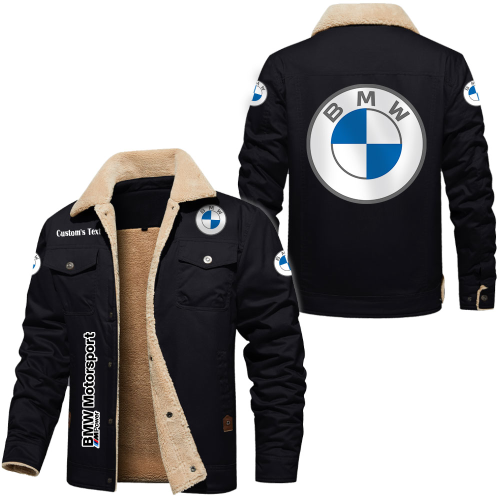 Bmw Racing Logo Custom Text Cargo Fleece Lined Cotton Jacket