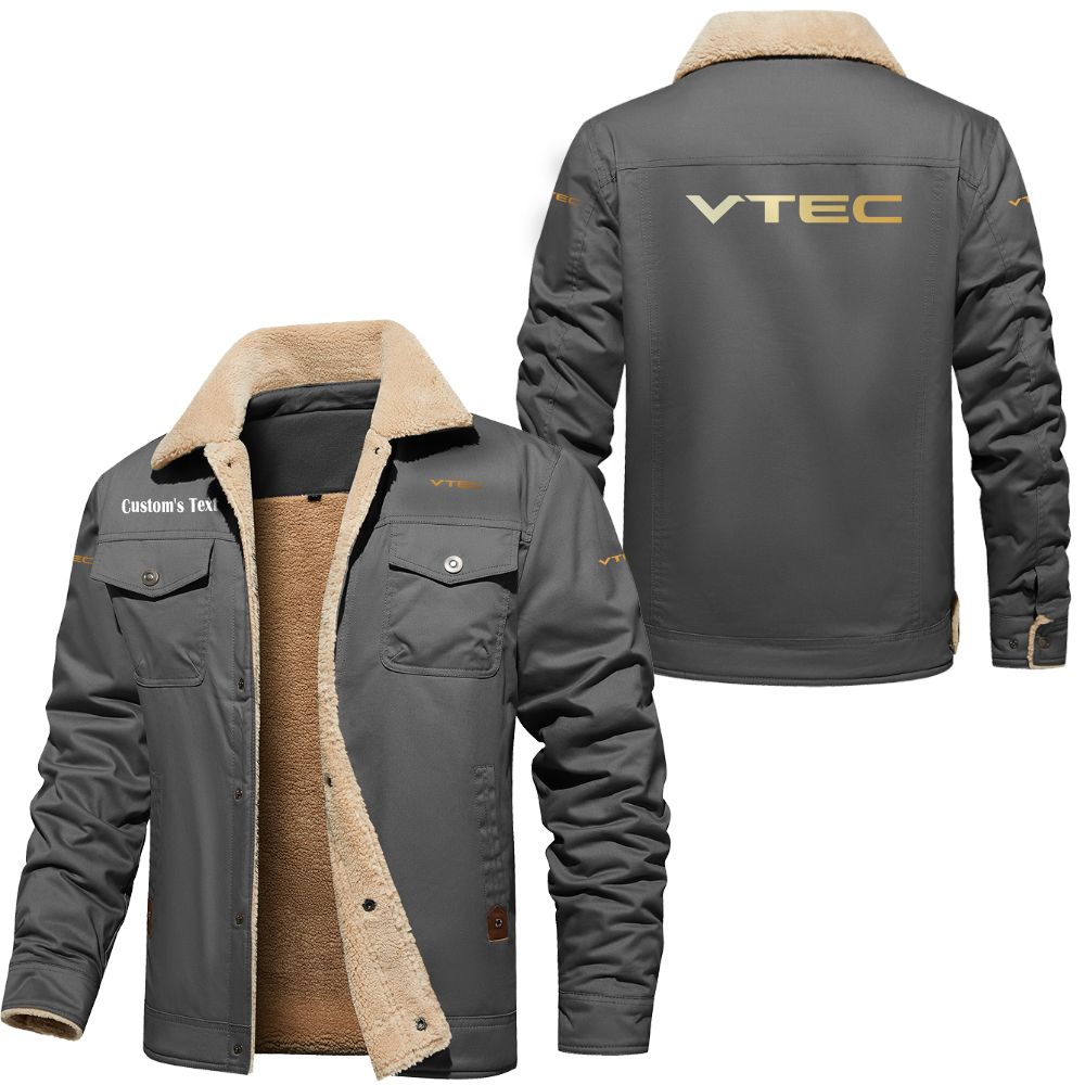 VTEC Logo Custom Name Cargo Fleece Lined Cotton Jacket A Real Man Who Loves Personalized Outerwear