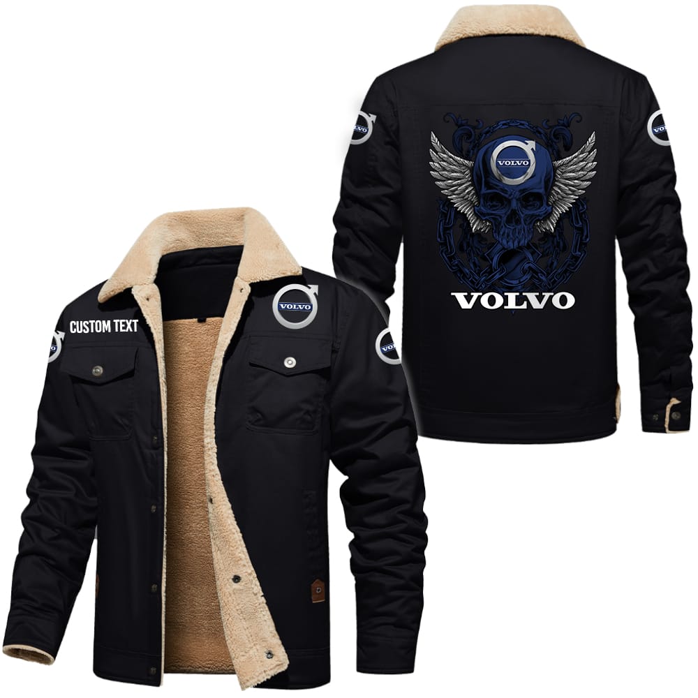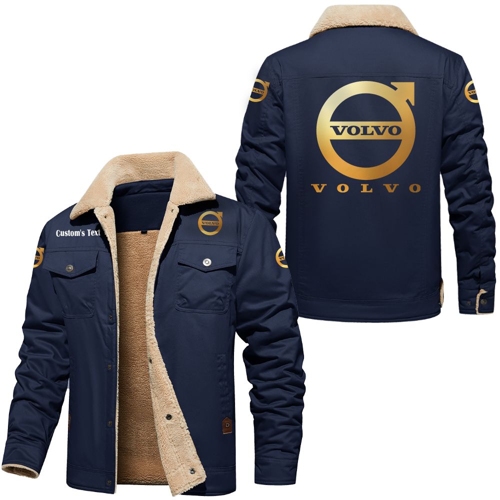 Volvo Logo Custom Name Cargo Fleece Lined Cotton Jacket