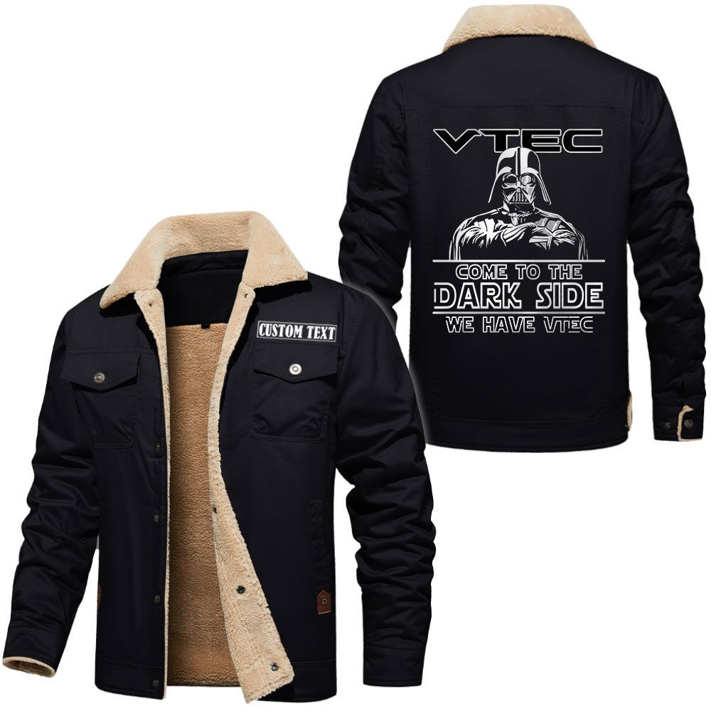 VTEC Logo Custom Name Cargo Fleece Lined Cotton Jacket Personalized Outerwear with Dark Side Star Wars Design