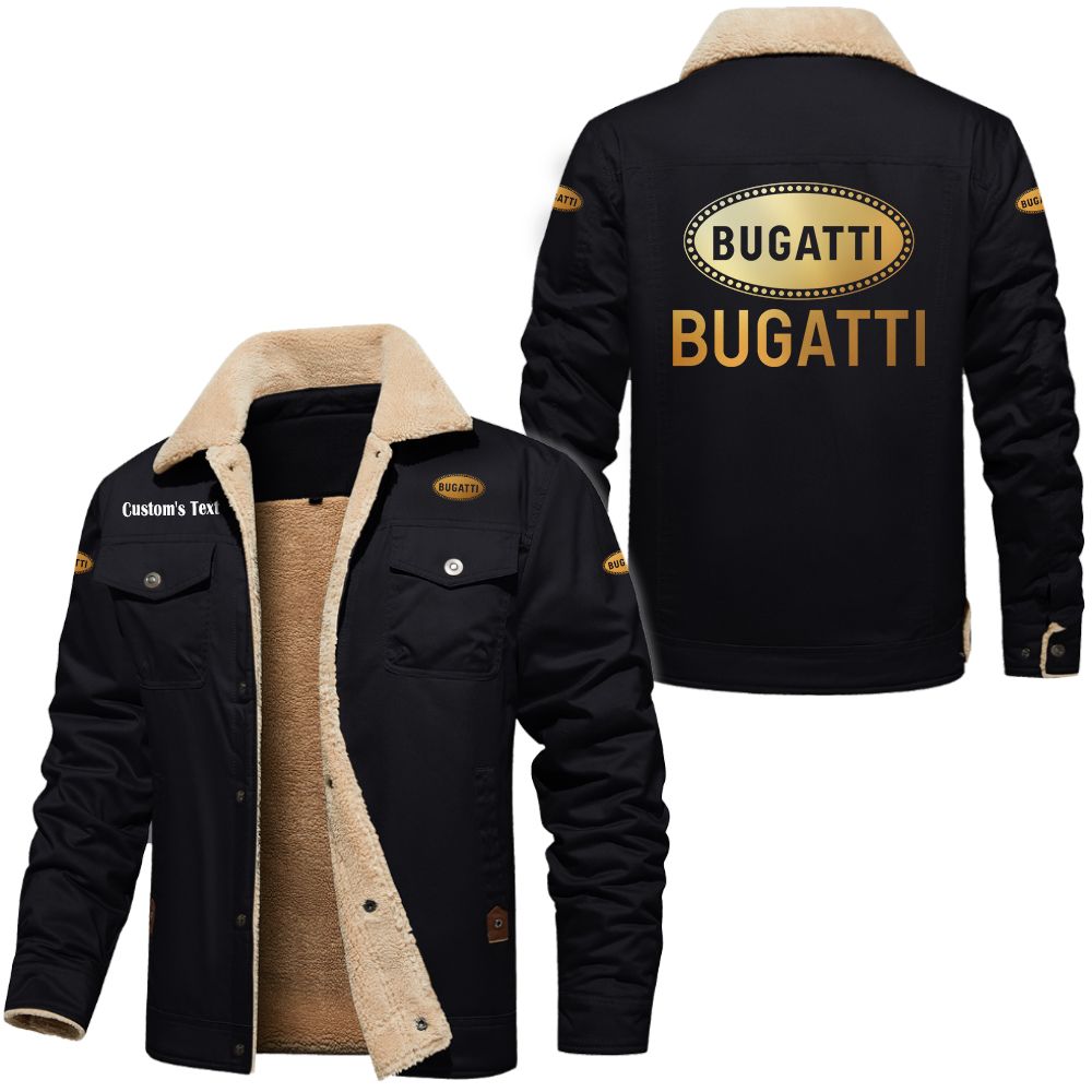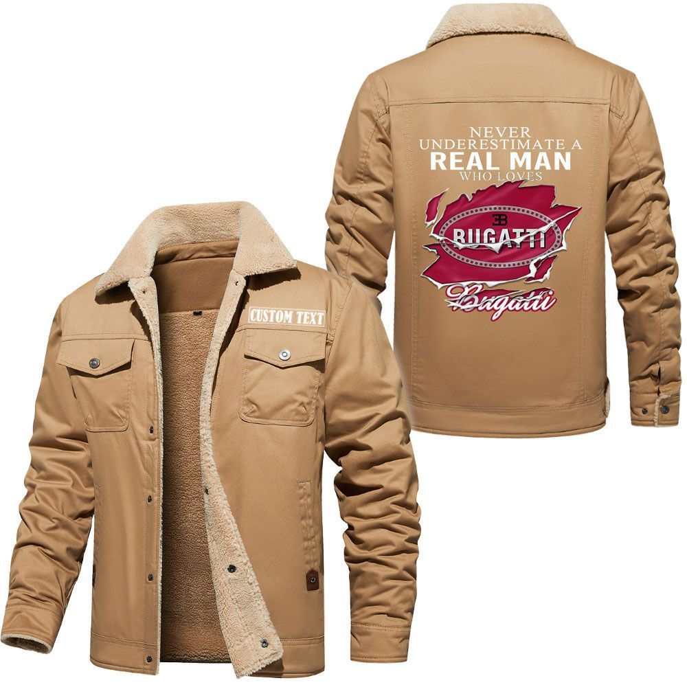 Bugatti Logo Custom Name Cargo Fleece Lined Cotton Jacket A Real Man Who Loves Personalized Outerwear