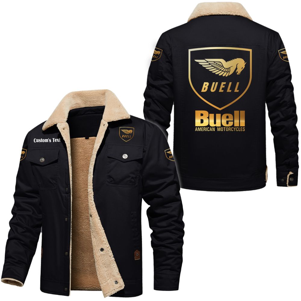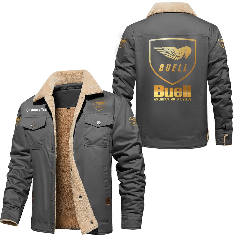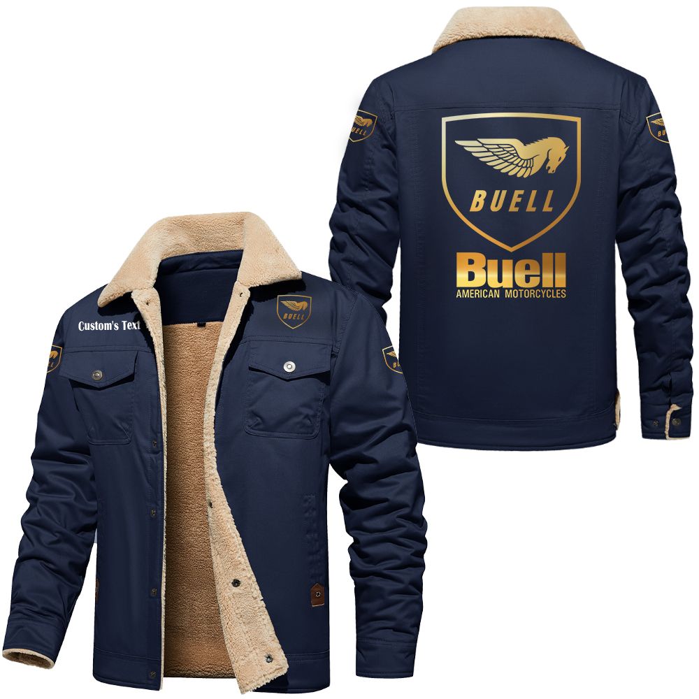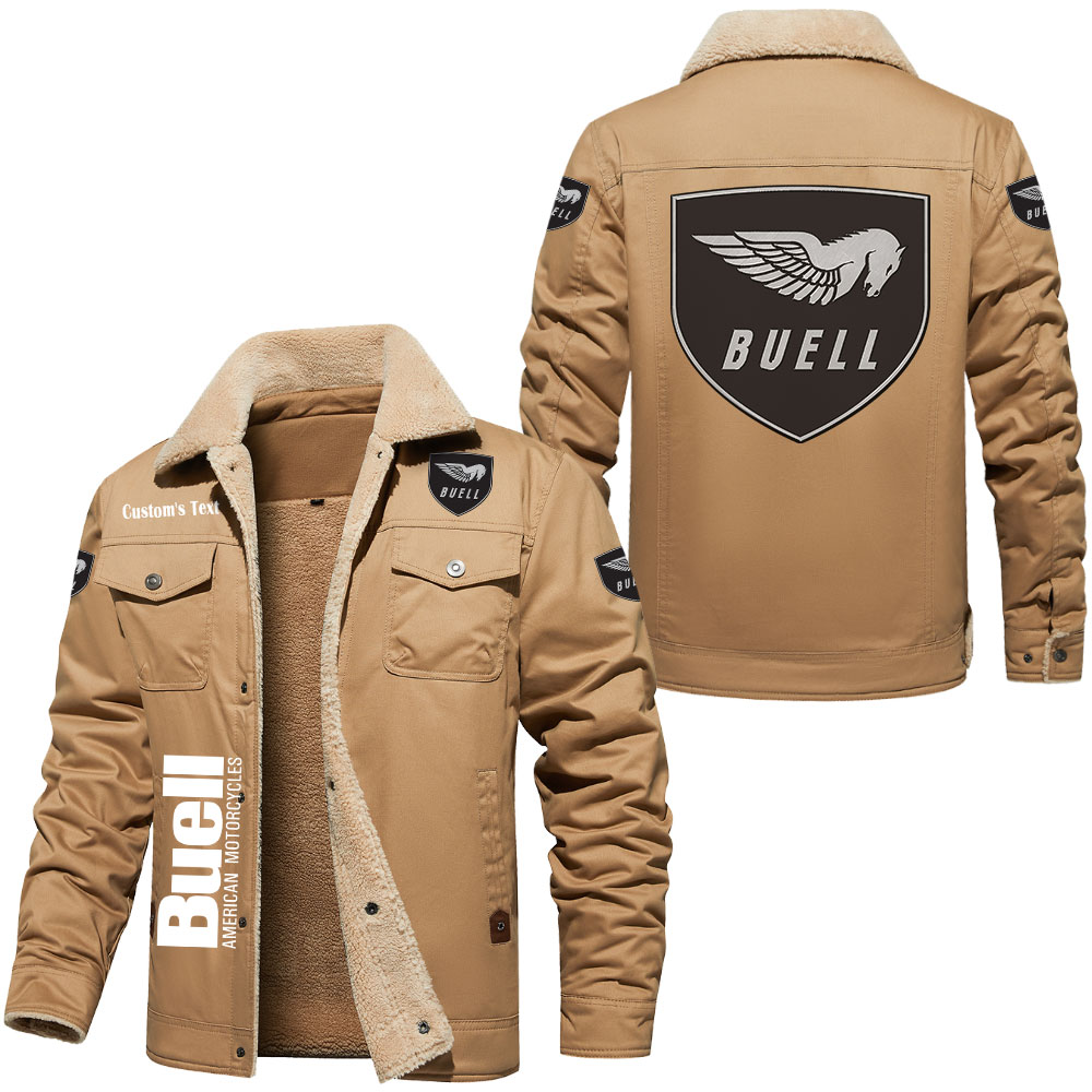 Buell American Motorcycle Logo Custom Text Cargo Fleece Lined Cotton Jacket