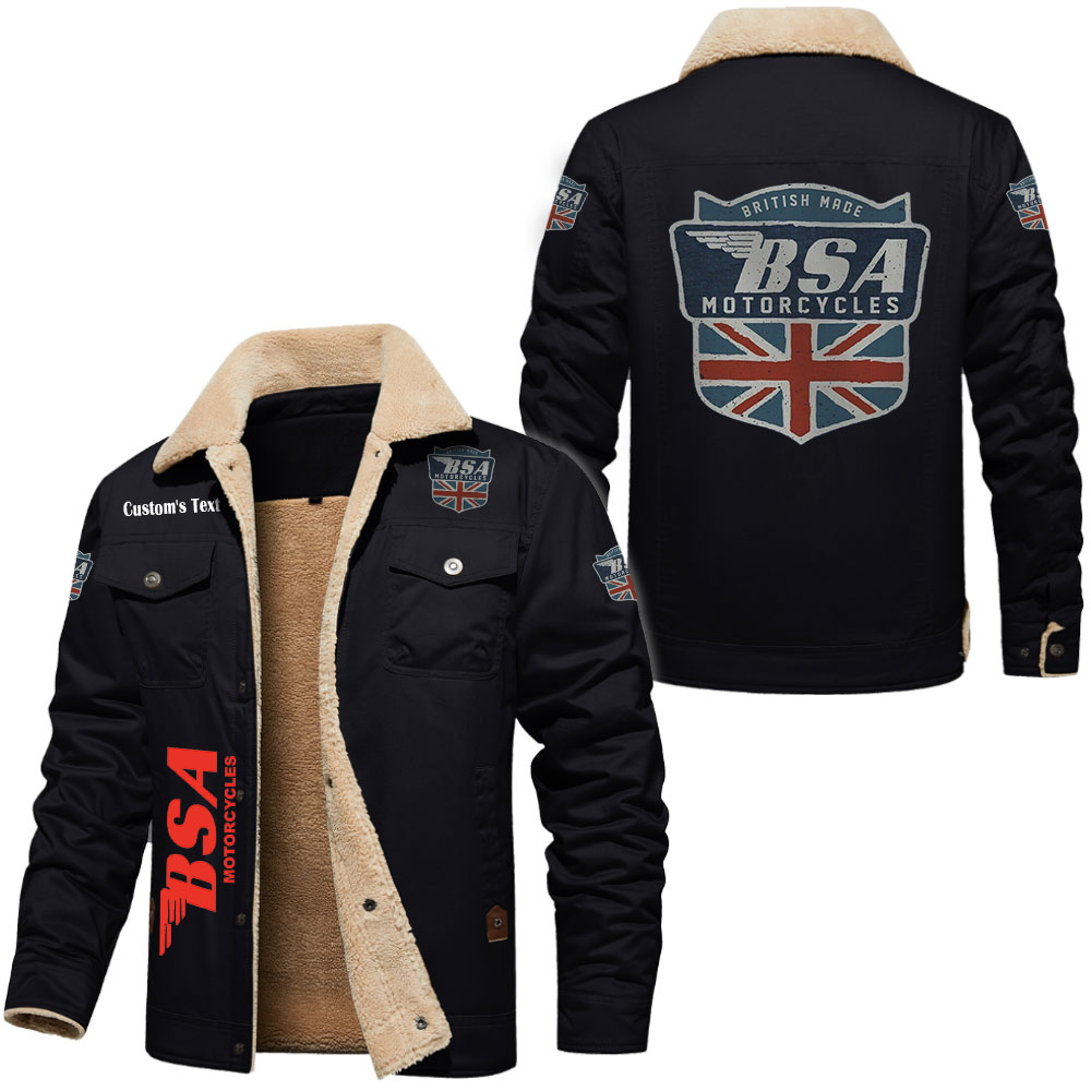 BSA Motorcycles Logo Custom Text Cargo Fleece Lined Cotton Jacket