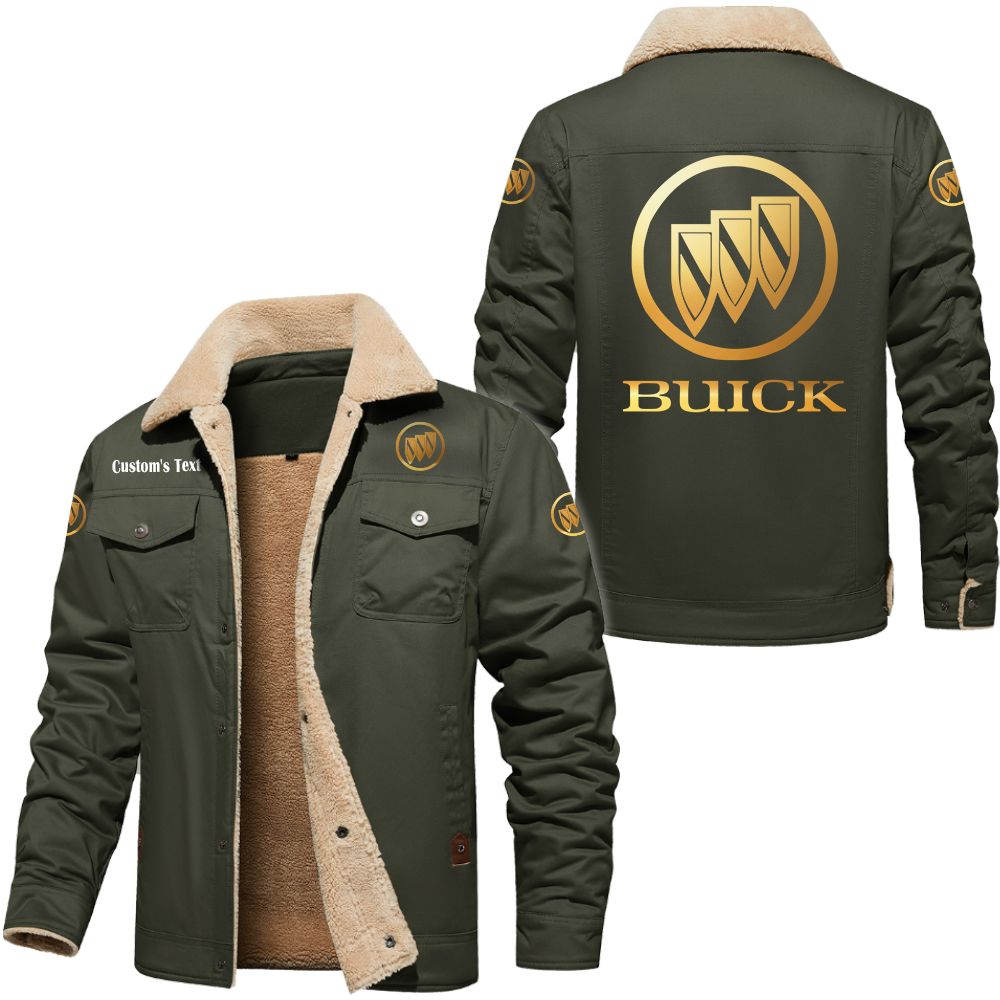 Buick Golden Logo Custom Cargo Fleece Lined Cotton Jacket Army Green