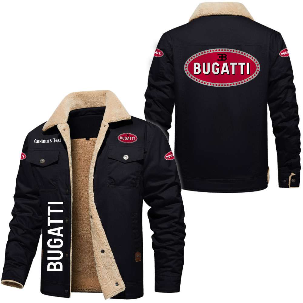 Bugatti Logo Custom Name Cargo Fleece Lined Cotton Jacket Stylish Warm Personalized Outerwear
