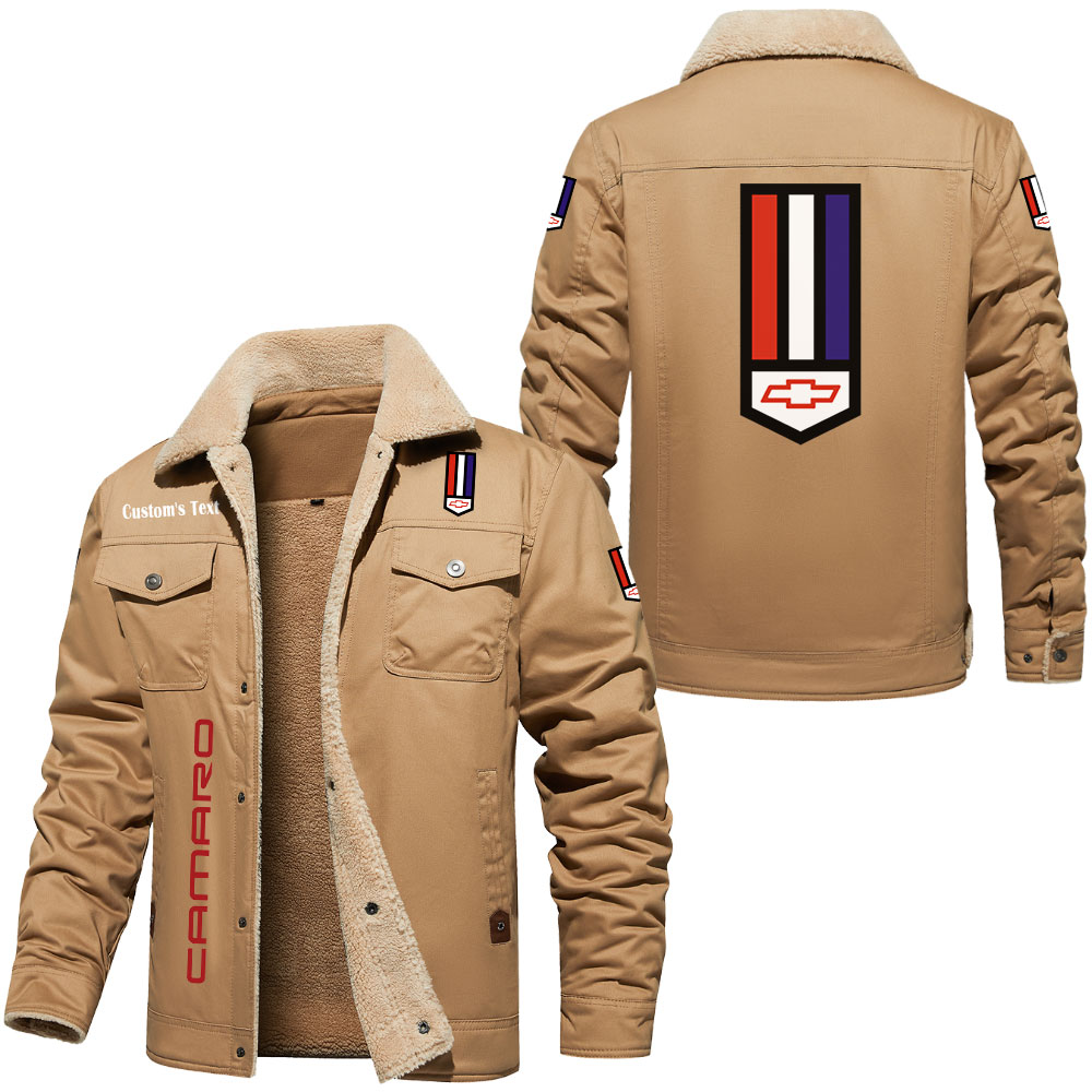 Camaro Logo Custom Text Cargo Fleece Lined Cotton Jacket
