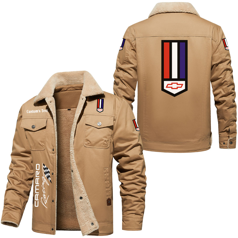 Camaro Racing Logo Custom Text Cargo Fleece Lined Cotton Jacket
