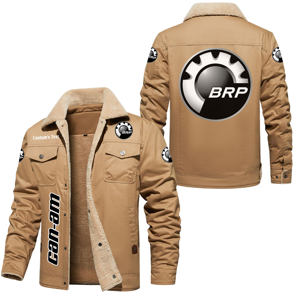 Can Am BRP Motorcycles Logo Custom Text Cargo Fleece Lined Cotton Jacket