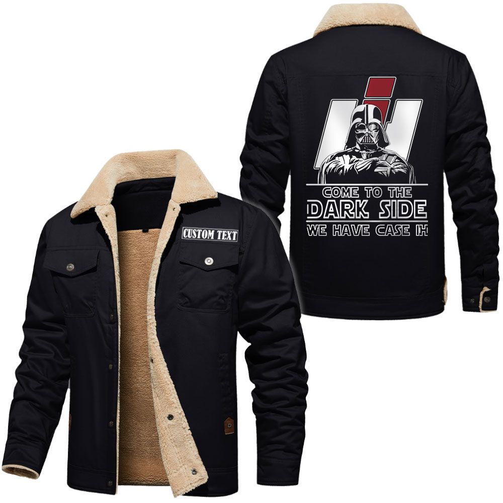 Case IH Logo Custom Name Cargo Fleece Lined Cotton Jacket Personalized Outerwear with Dark Side Star Wars Design