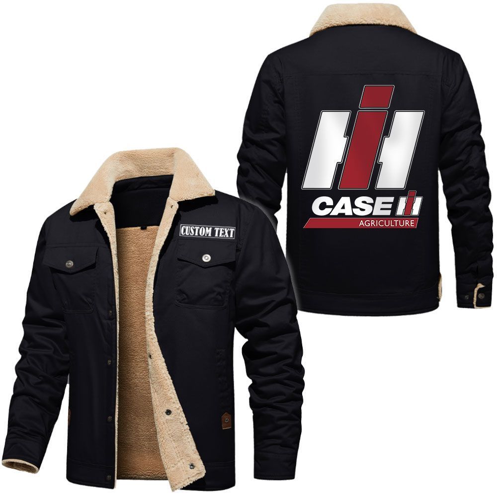 Case IH Agriculture Logo Custom Text Cargo Fleece Lined Cotton Jacket