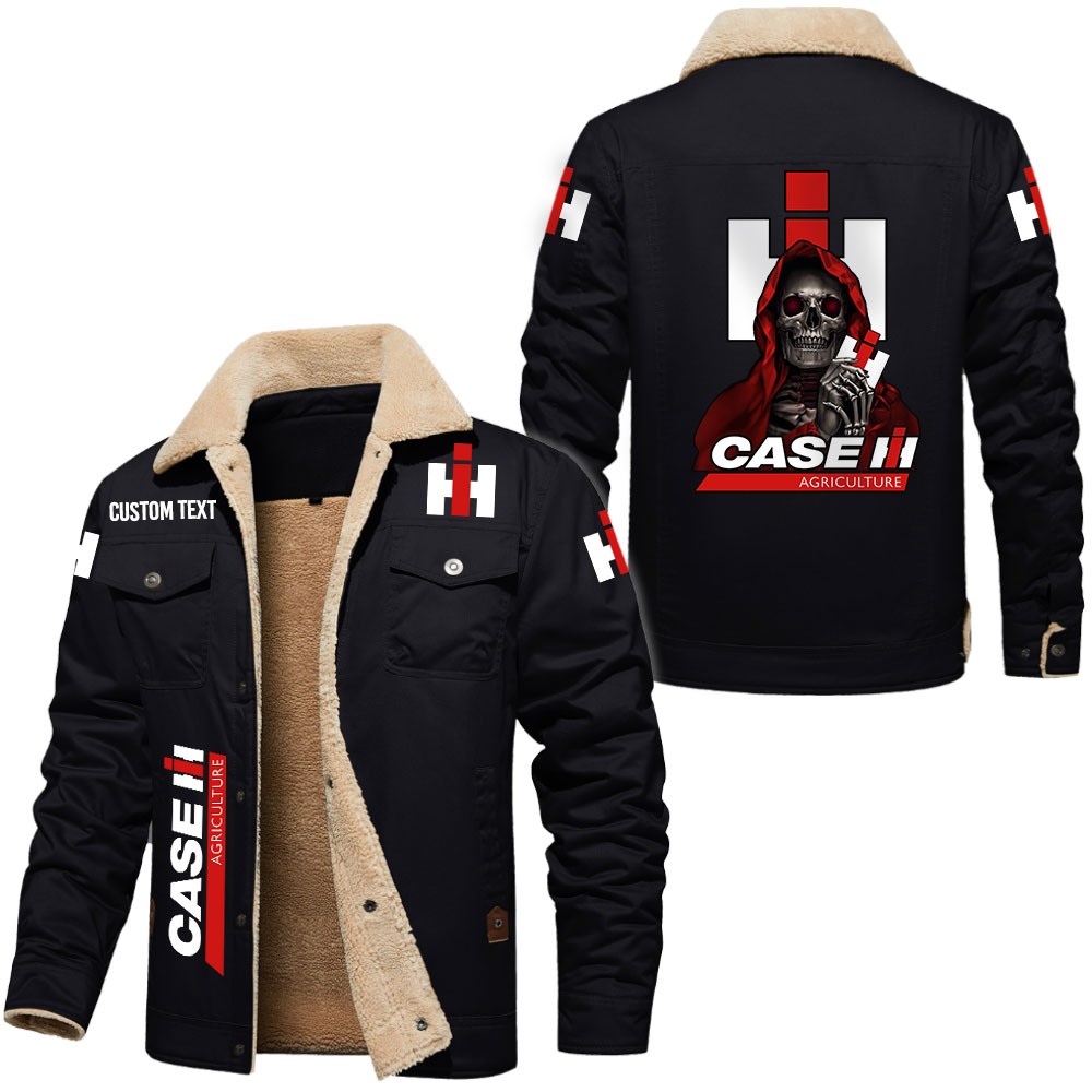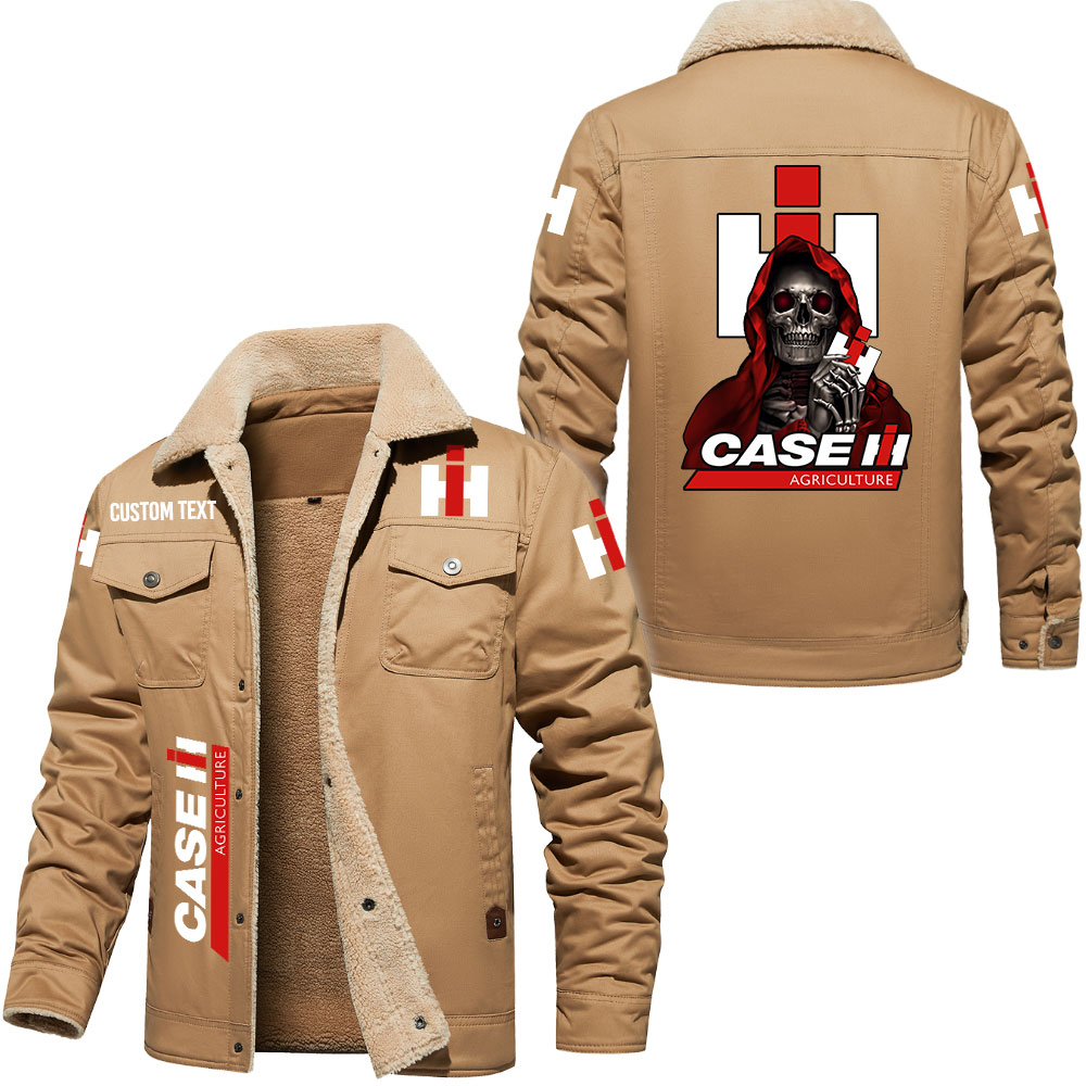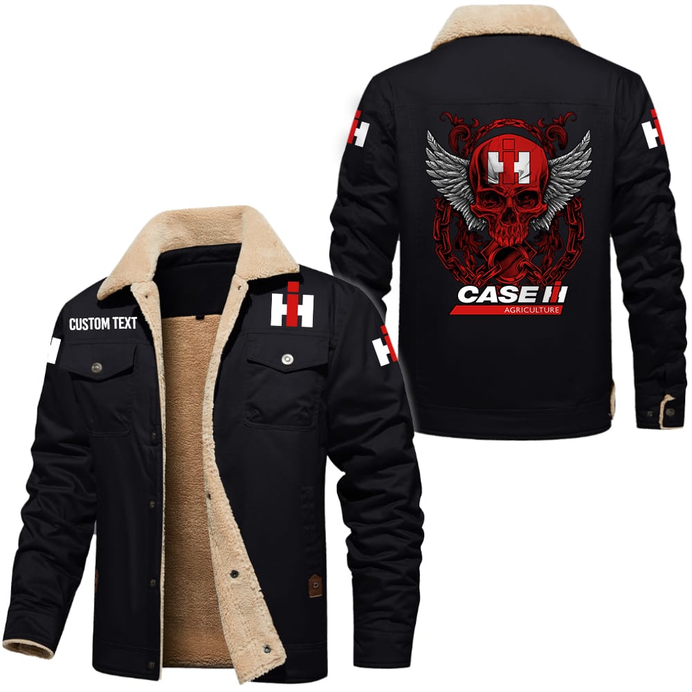 Case IH Logo Custom Name Cargo Fleece Lined Cotton Jacket Personalized Outerwear with Skull Design