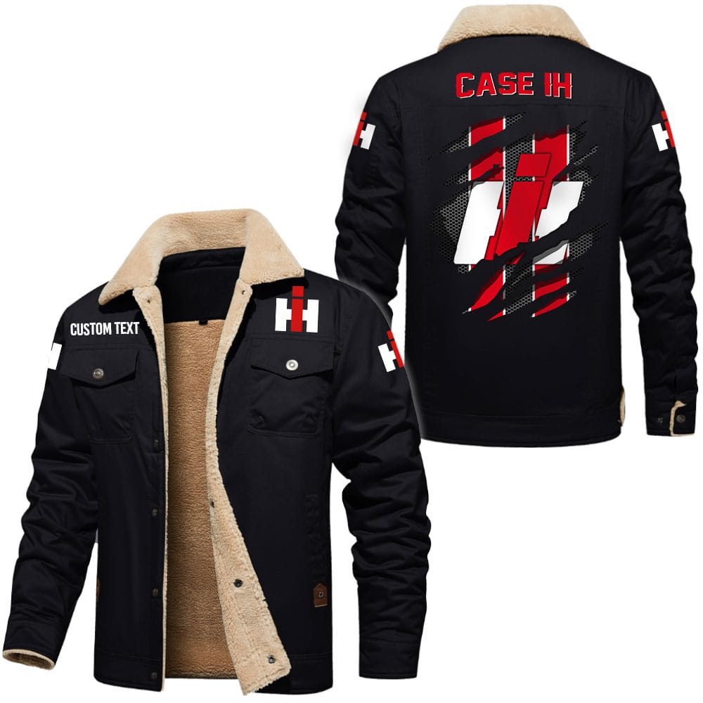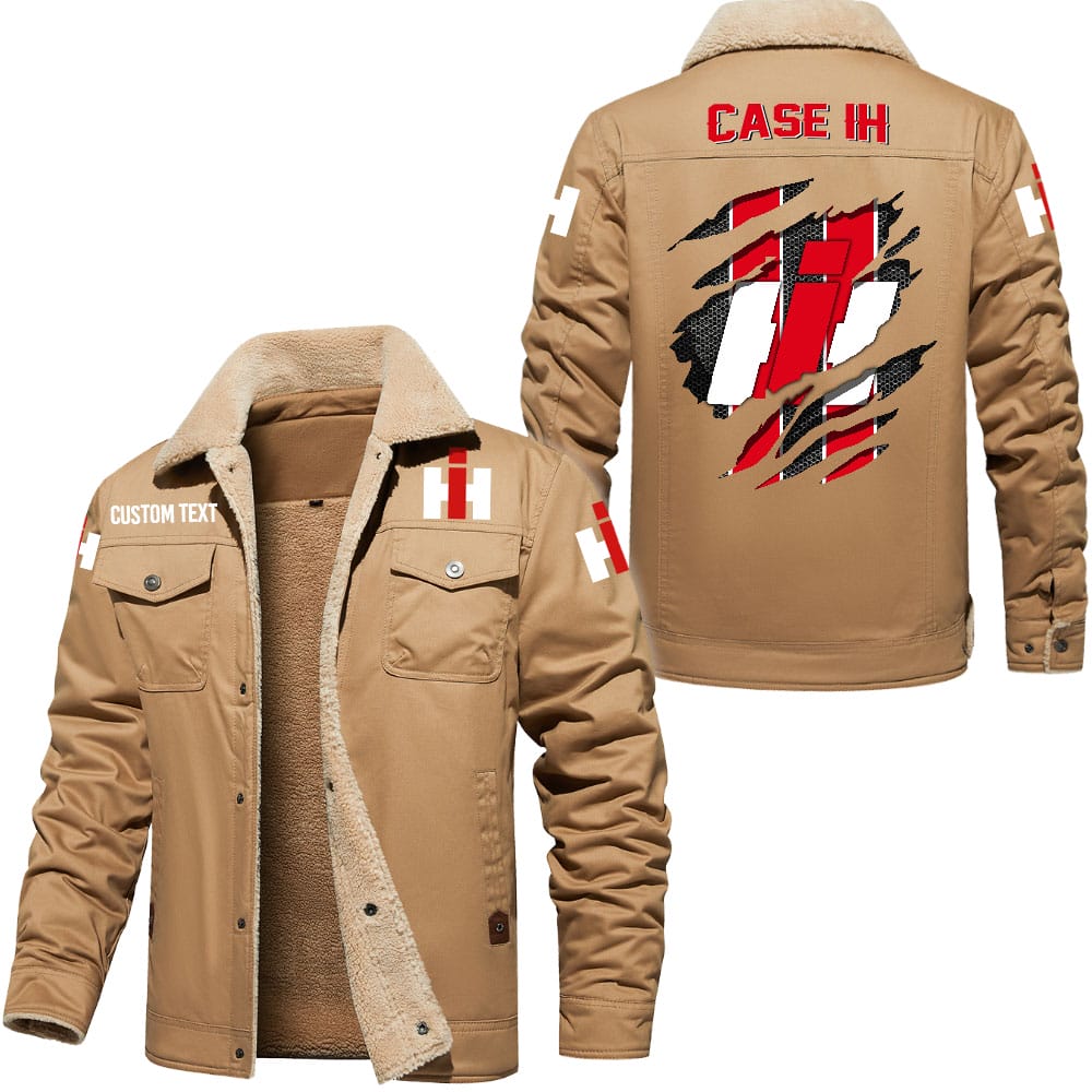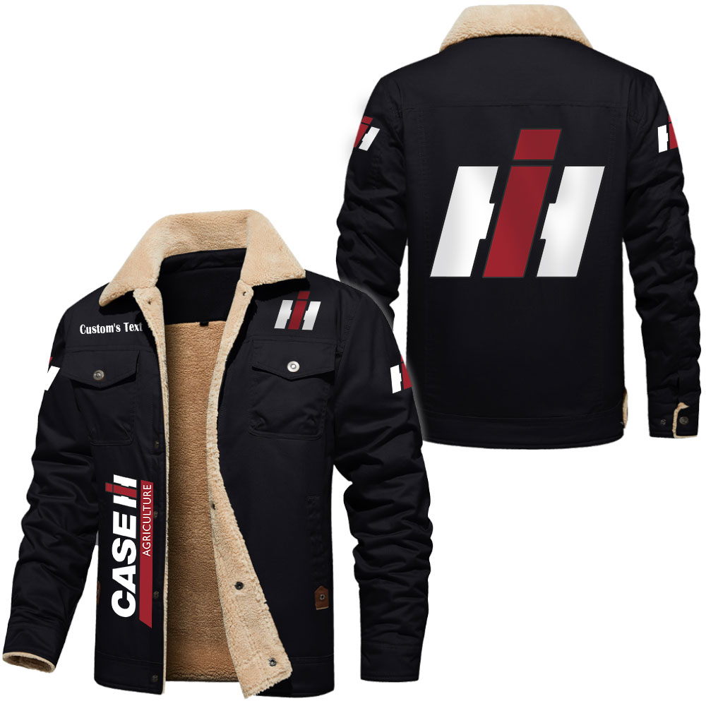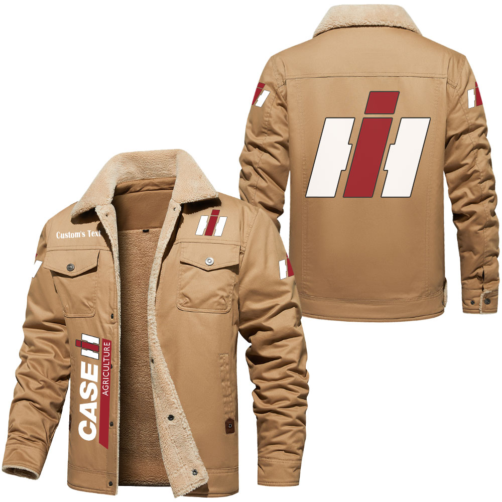 Case IH Logo Custom Name Cargo Fleece Lined Cotton Jacket Stylish Warm Personalized Outerwear