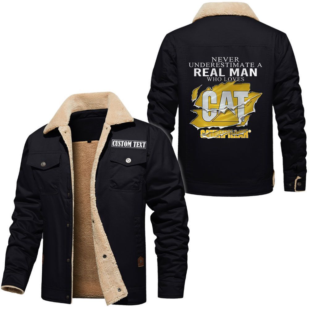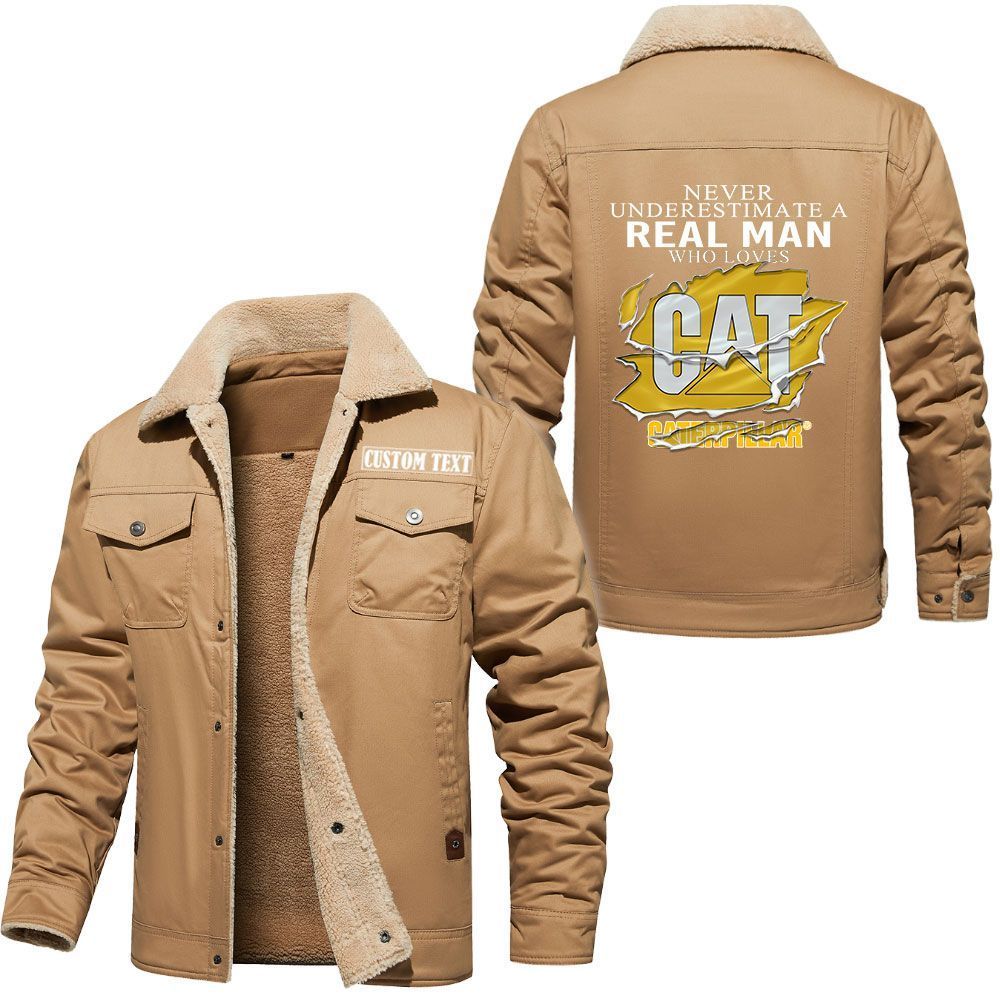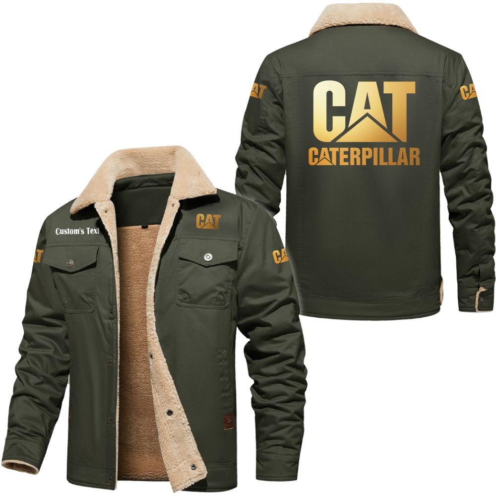 Caterpillar Inc Logo Custom Name Cargo Fleece Lined Cotton Jacket A Real Man Who Loves Personalized Outerwear