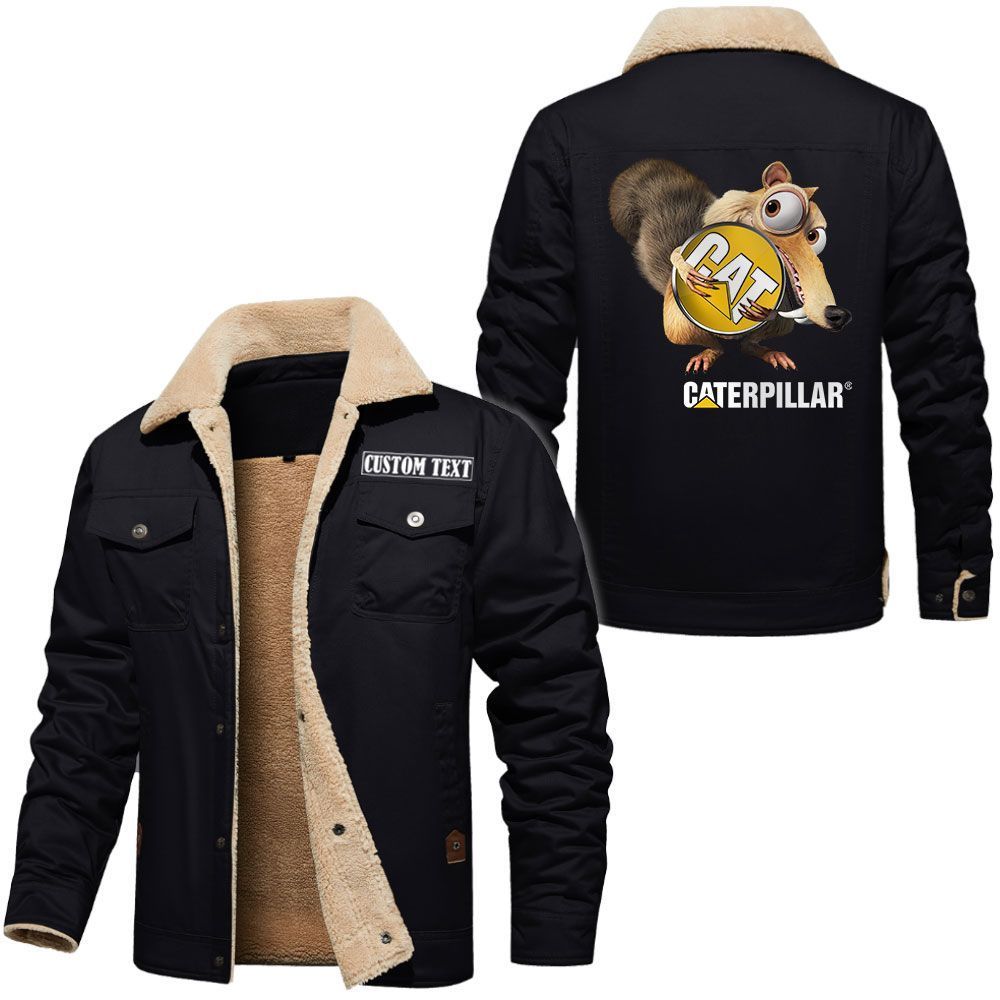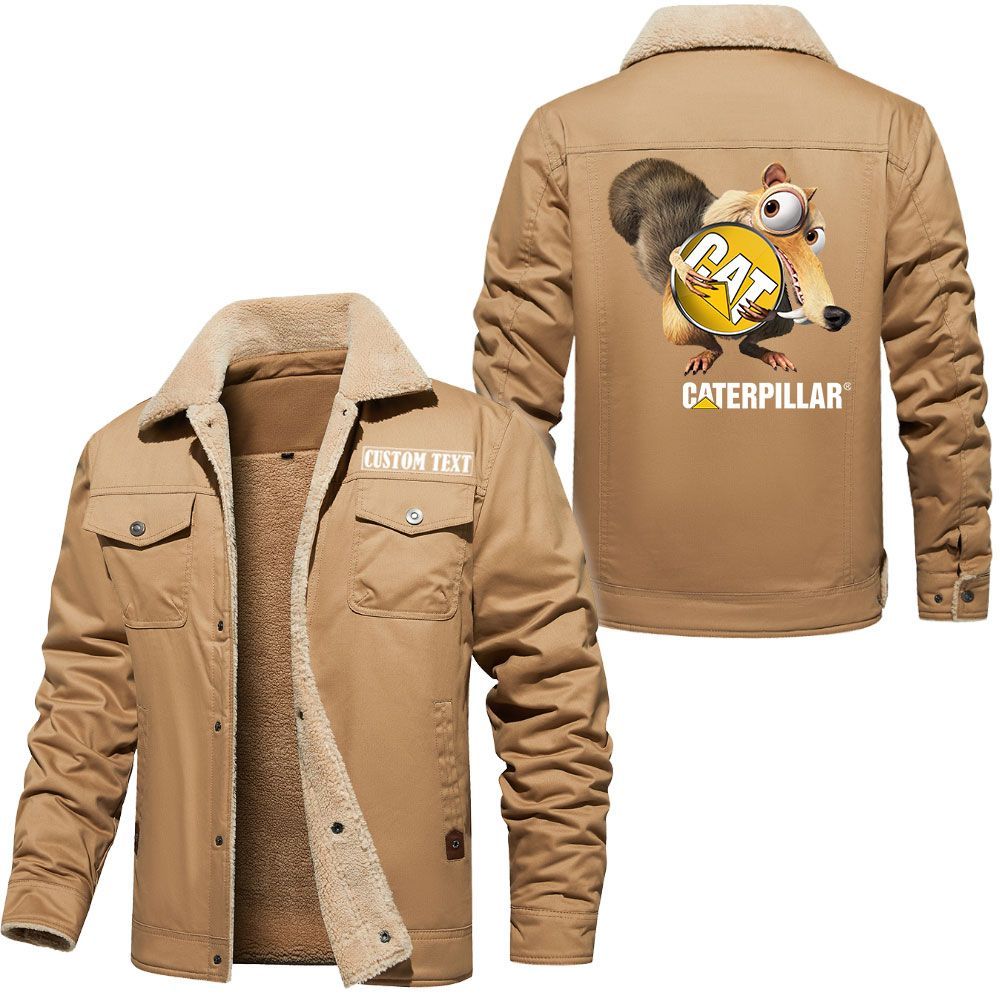 Caterpillar Inc Logo Custom Name Cargo Fleece Lined Cotton Jacket Scrat Ice Age Design Personalized Outerwear