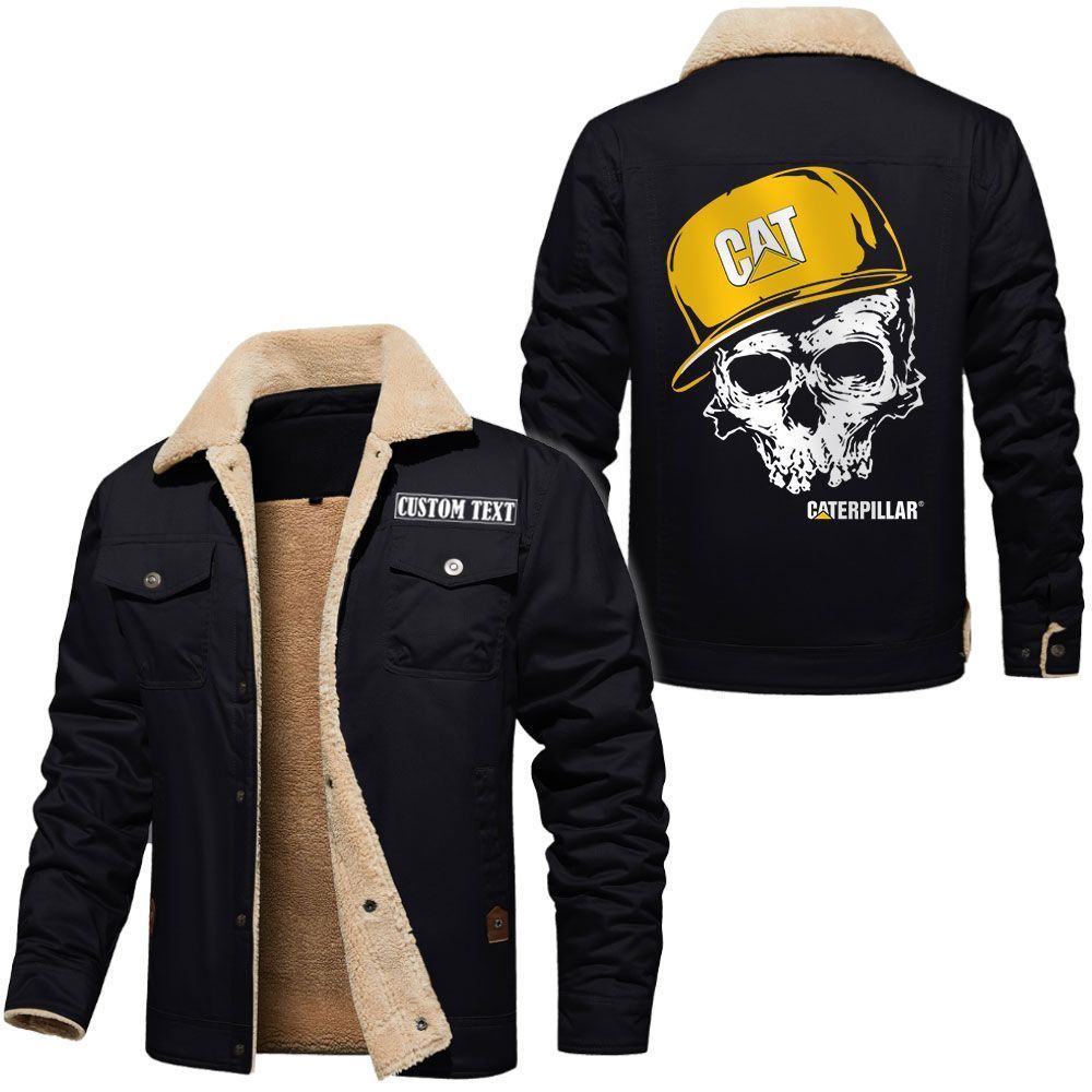 Caterpillar Inc Logo Custom Name Cargo Fleece Lined Cotton Jacket Personalized Outerwear with Skull Design