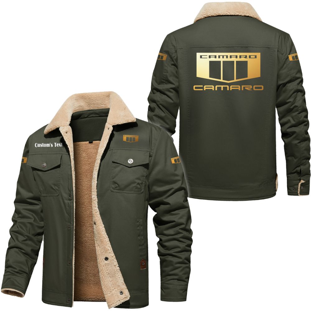 Chevrolet Camaro Logo Custom Name Cargo Fleece Lined Cotton Jacket