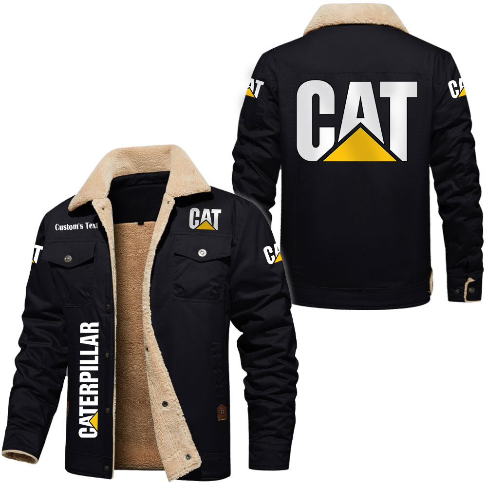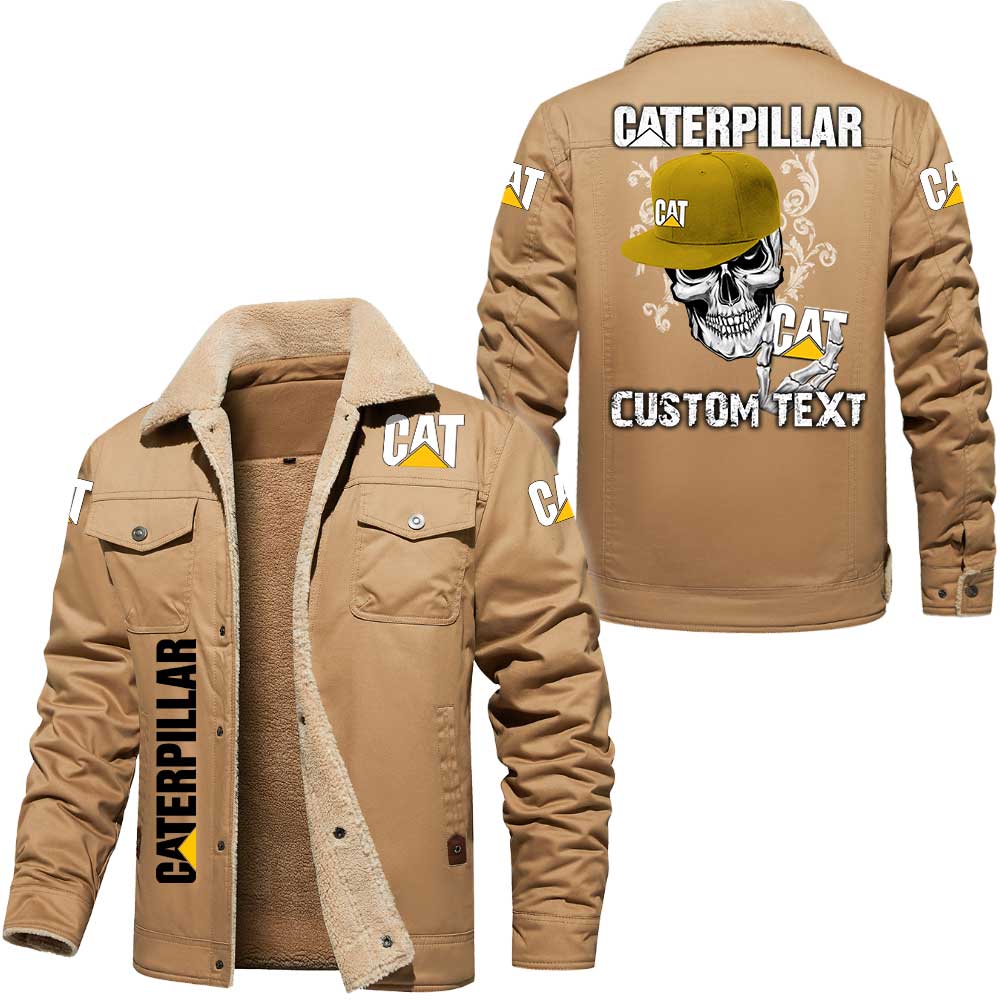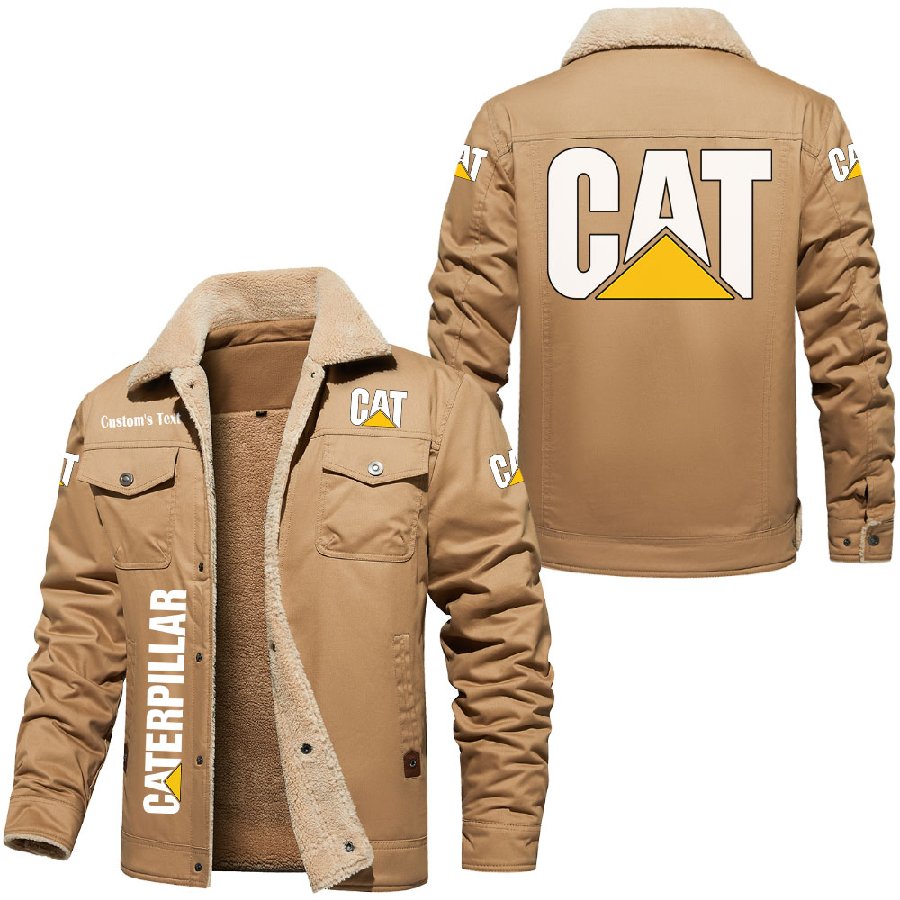 Caterpillar Inc Logo Custom Name Cargo Fleece Lined Cotton Jacket Stylish Warm Personalized Outerwear