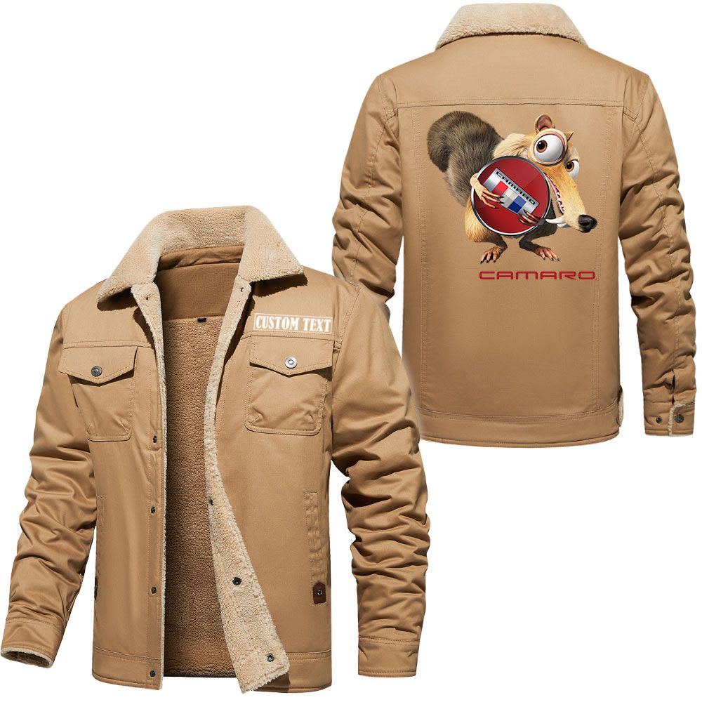 Chevrolet Camaro Logo Custom Name Cargo Fleece Lined Cotton Jacket Scrat Ice Age Design Personalized Outerwear