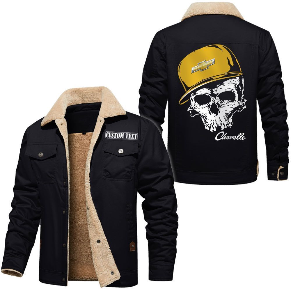 Chevrolet Chevelle Logo Custom Name Cargo Fleece Lined Cotton Jacket Personalized Outerwear with Skull Design