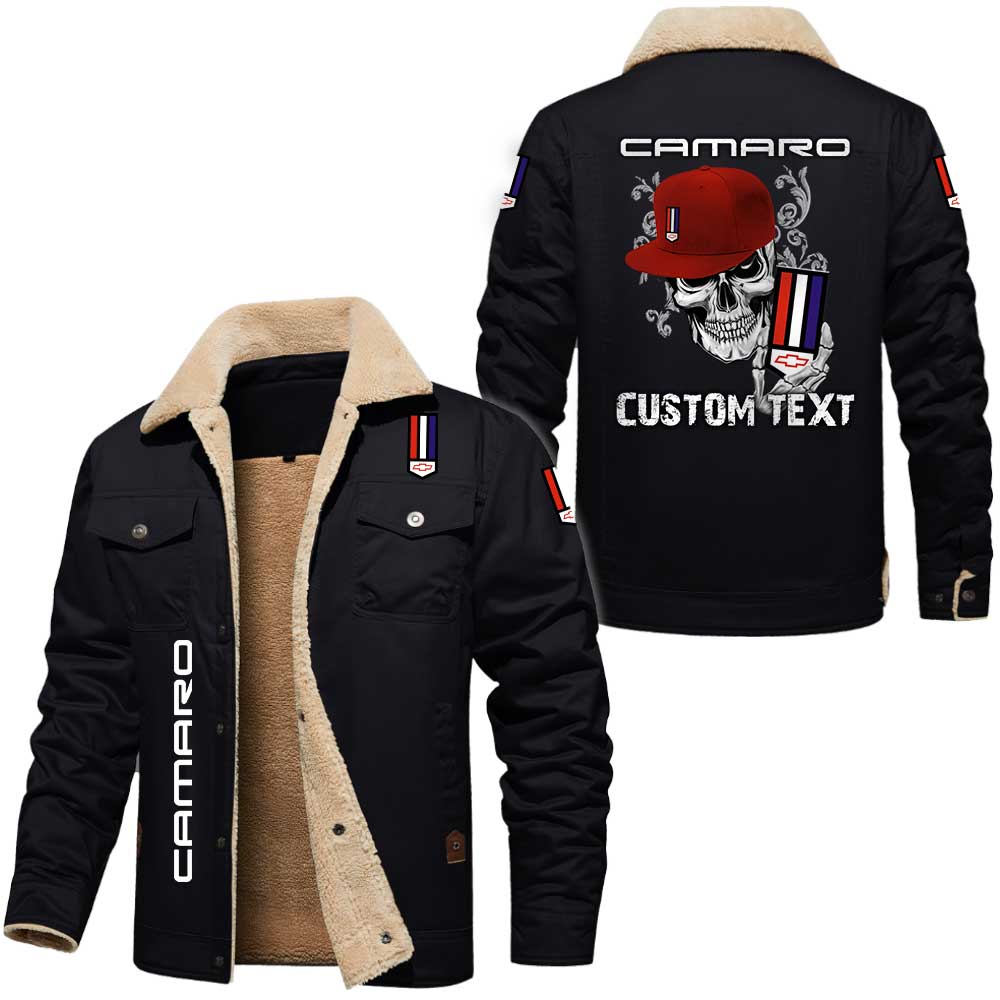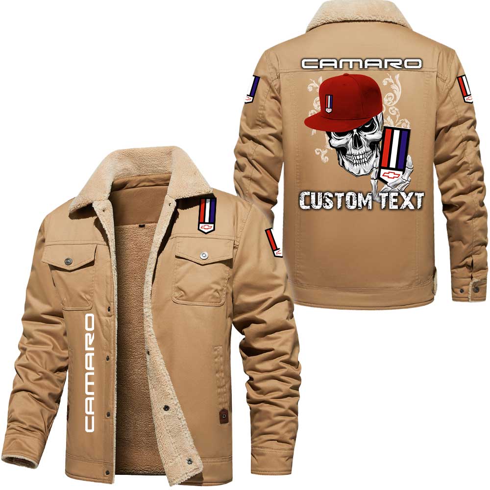 Chevrolet Camaro Skull Custom Name Cargo Fleece Lined Cotton Jacket