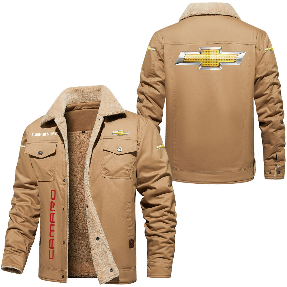 Chevrolet Camaro Logo Custom Text Cargo Fleece Lined Cotton Jacket