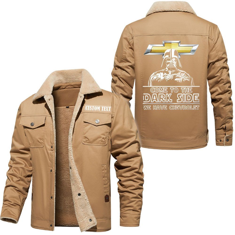 Chevrolet Logo Custom Name Cargo Fleece Lined Cotton Jacket Personalized Outerwear with Dark Side Star Wars Design