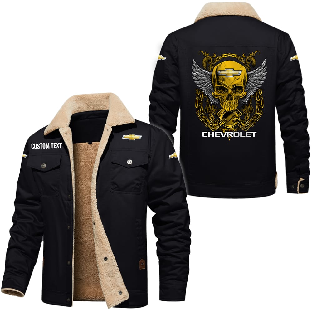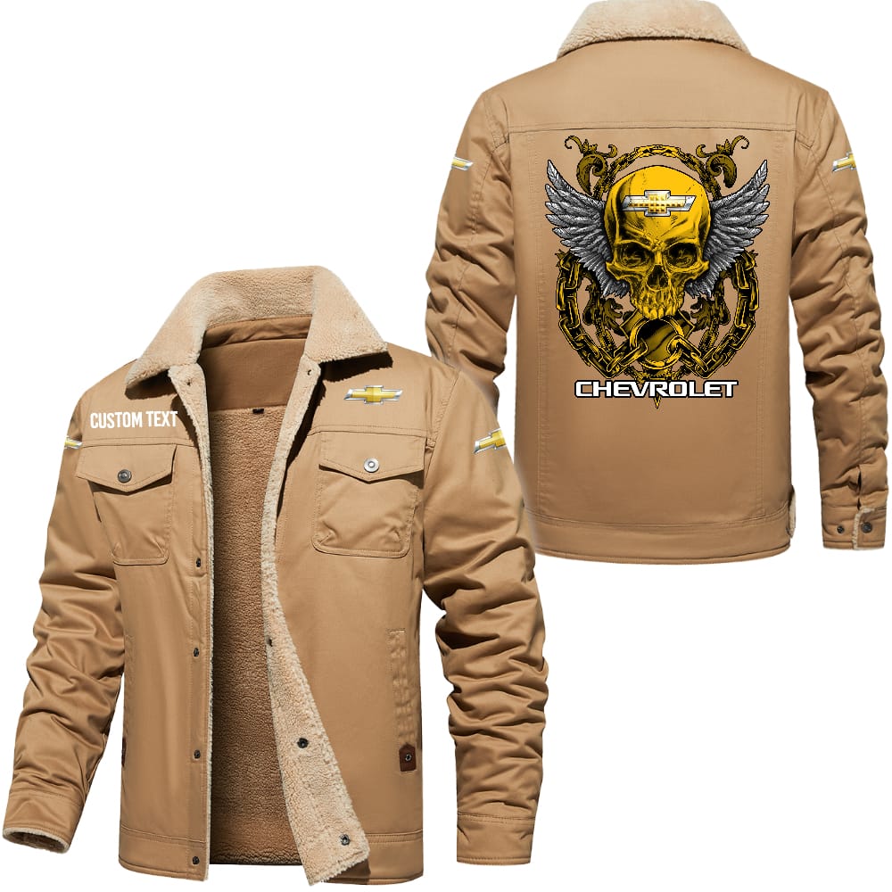Chevrolet Custom Name Skull Design Cargo Fleece Lined Cotton Jacket