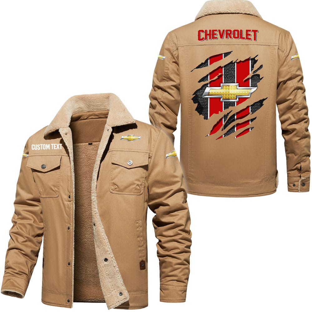 Chevrolet Logo Custom Name Cargo Fleece Lined Cotton Jacket