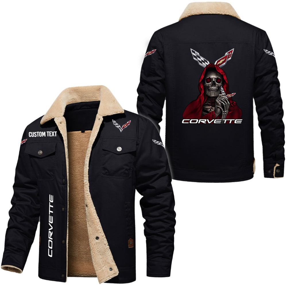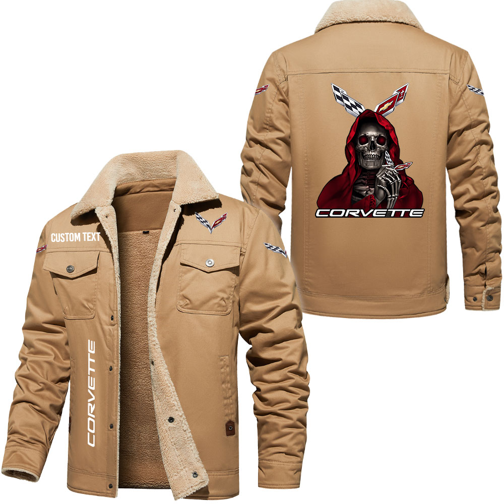Chevrolet Corvette Logo Custom Name Cargo Fleece Lined Cotton Jacket Personalized Outerwear with Skull Design