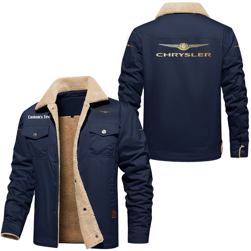 Chrysler Logo Custom Name Cargo Fleece Lined Cotton Jacket Stylish Warm Personalized Outerwear