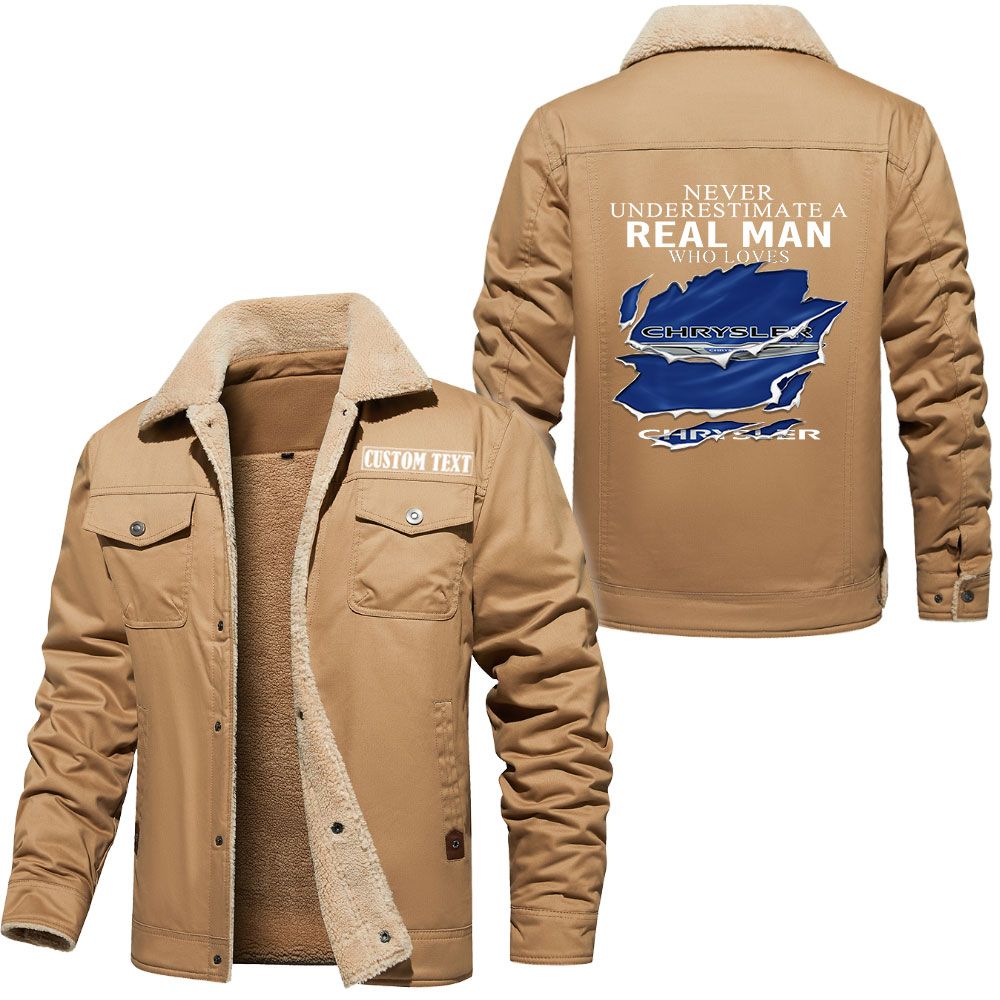 Chrysler Logo Custom Name Cargo Fleece Lined Cotton Jacket A Real Man Who Loves Personalized Outerwear