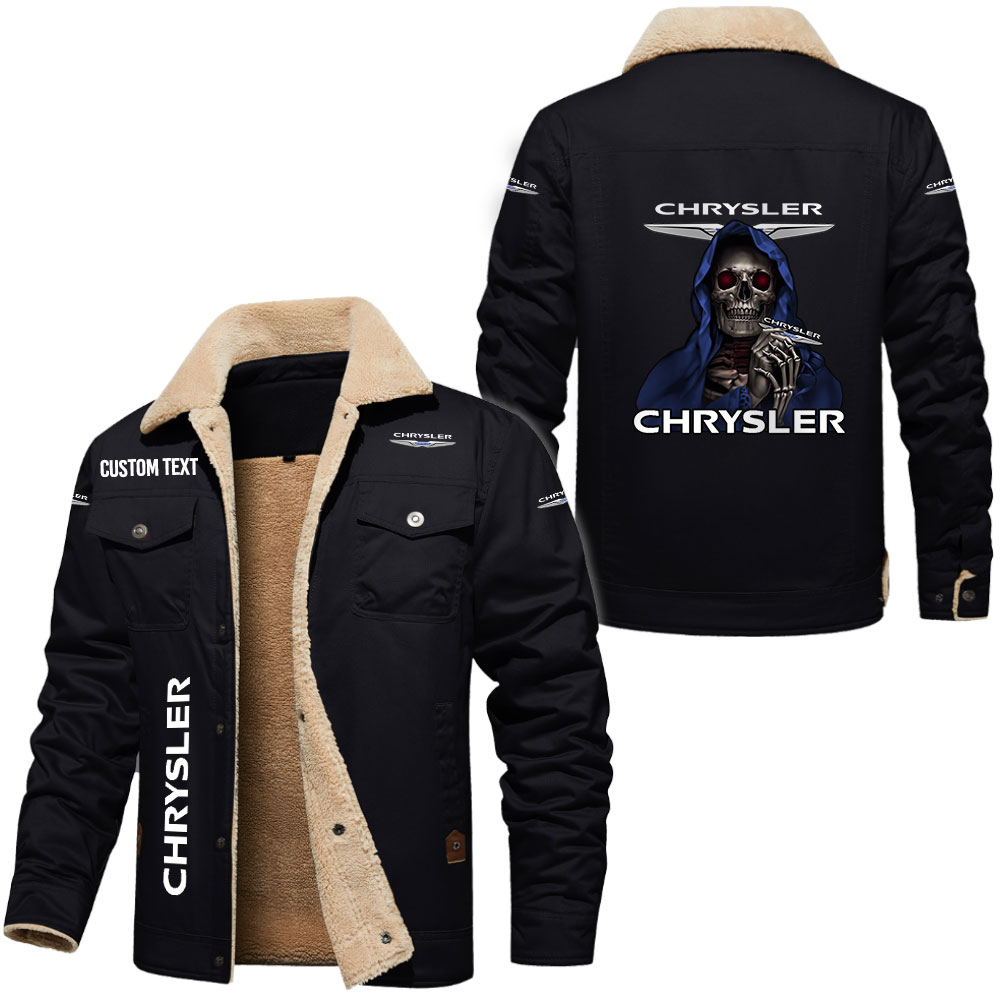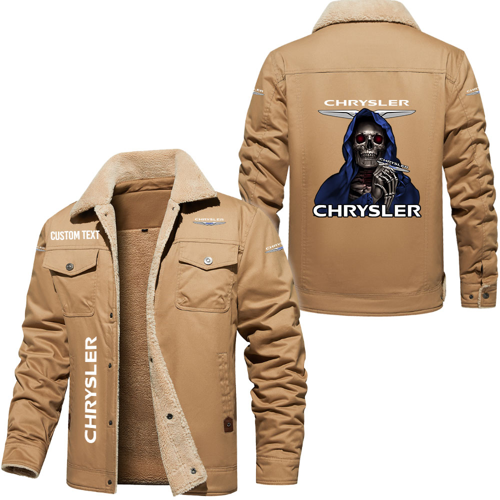 Chrysler Logo Custom Name Cargo Fleece Lined Cotton Jacket Personalized Outerwear with Skull Design