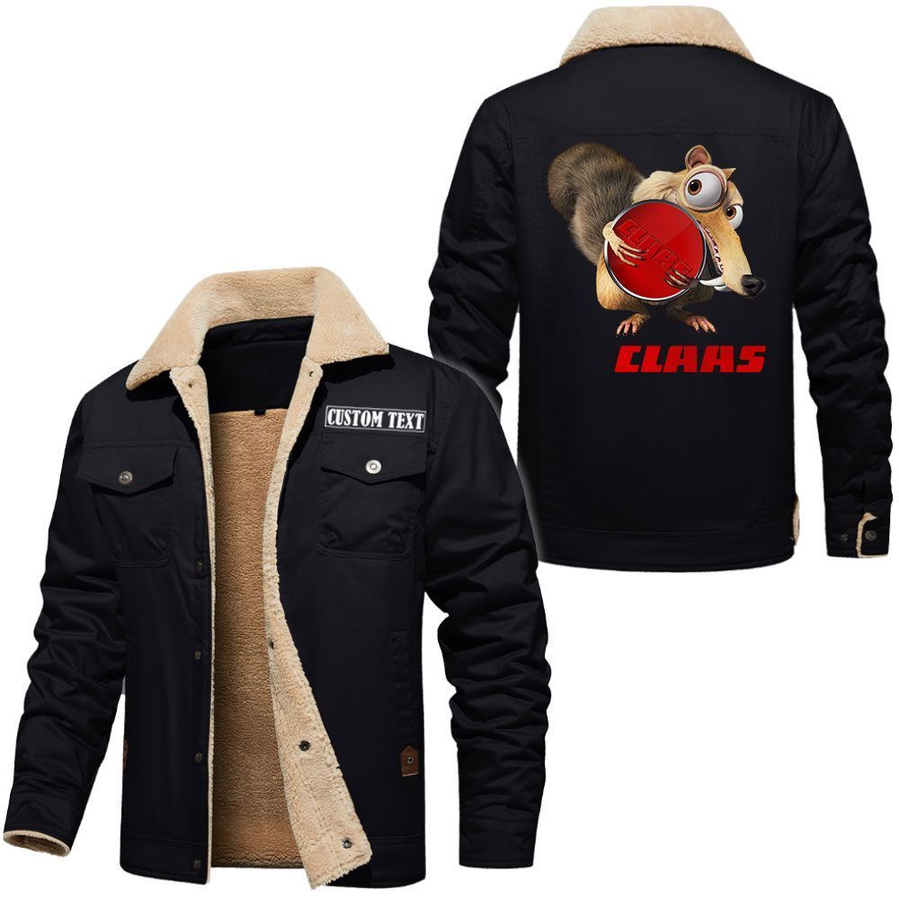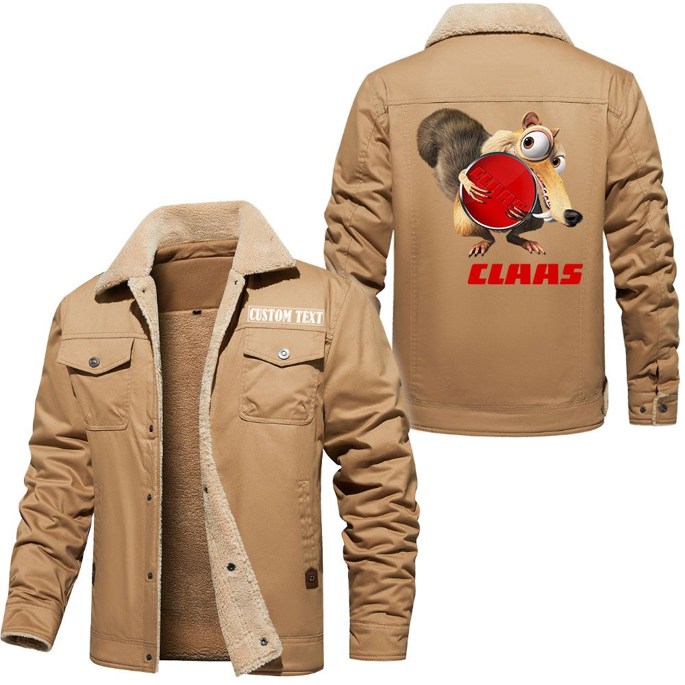 Claas Logo Custom Name Cargo Fleece Lined Cotton Jacket Scrat Ice Age Design Personalized Outerwear