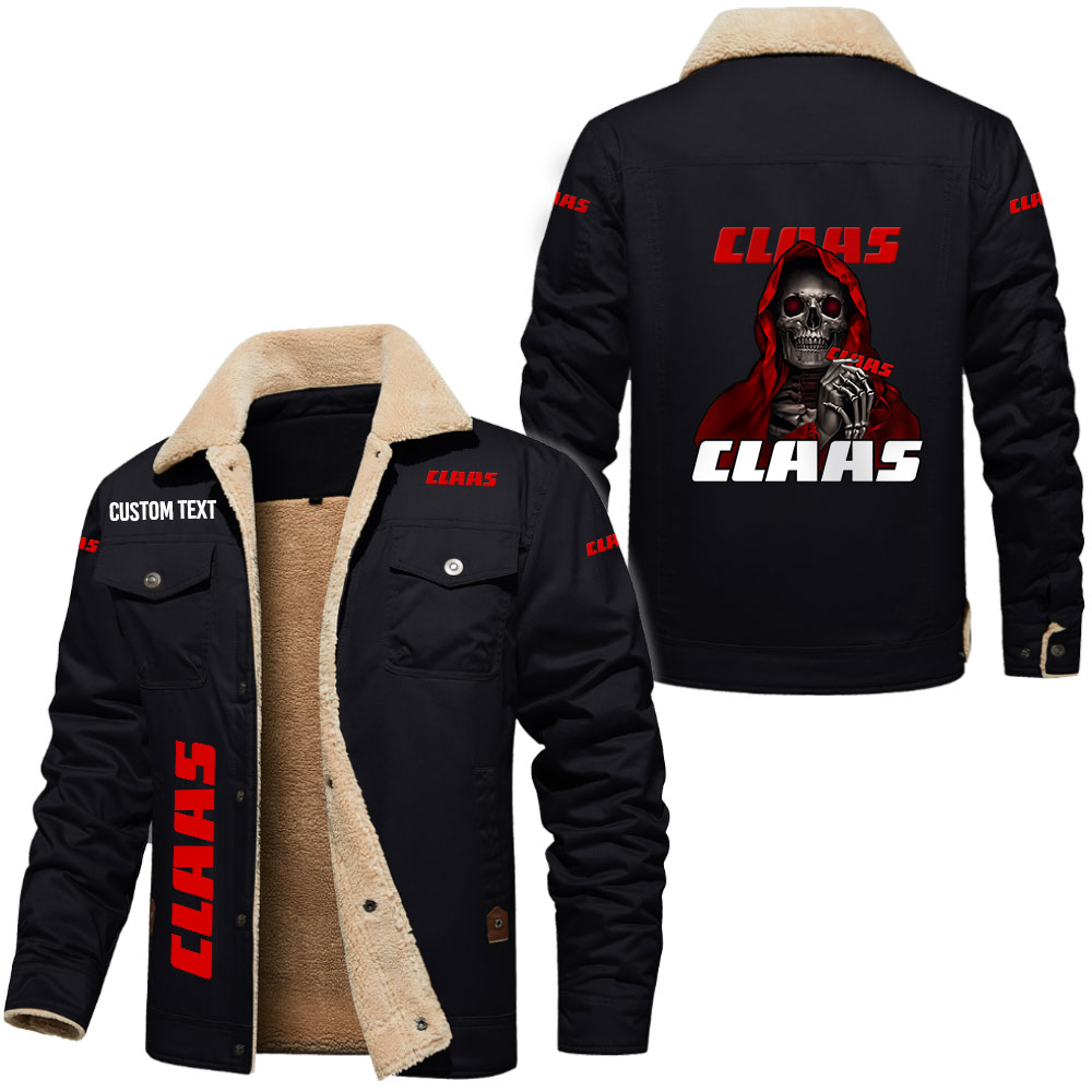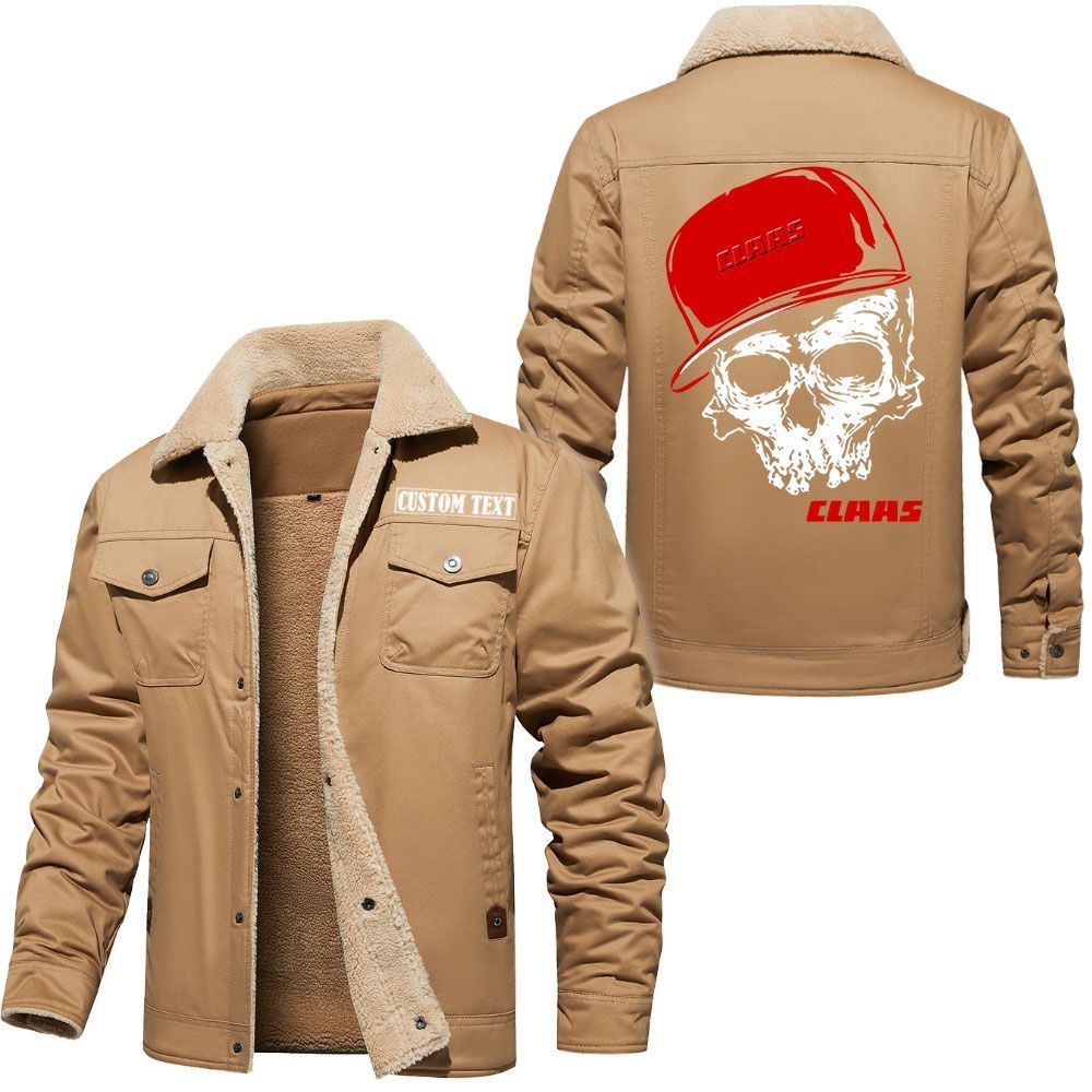 Claas Logo Custom Name Cargo Fleece Lined Cotton Jacket Personalized Outerwear with Skull Design