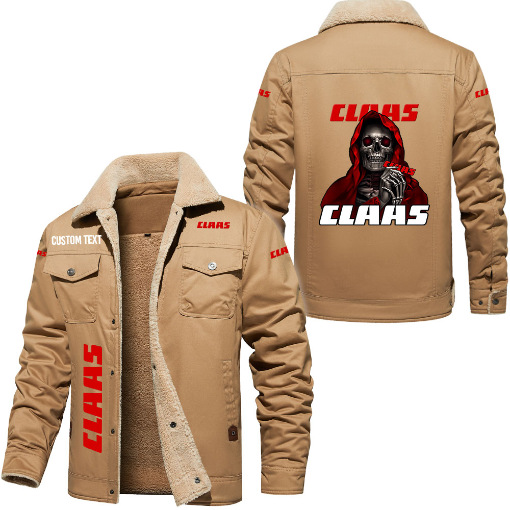 Claas Logo Custom Name Cargo Fleece Lined Cotton Jacket Stylish Warm Personalized Outerwear