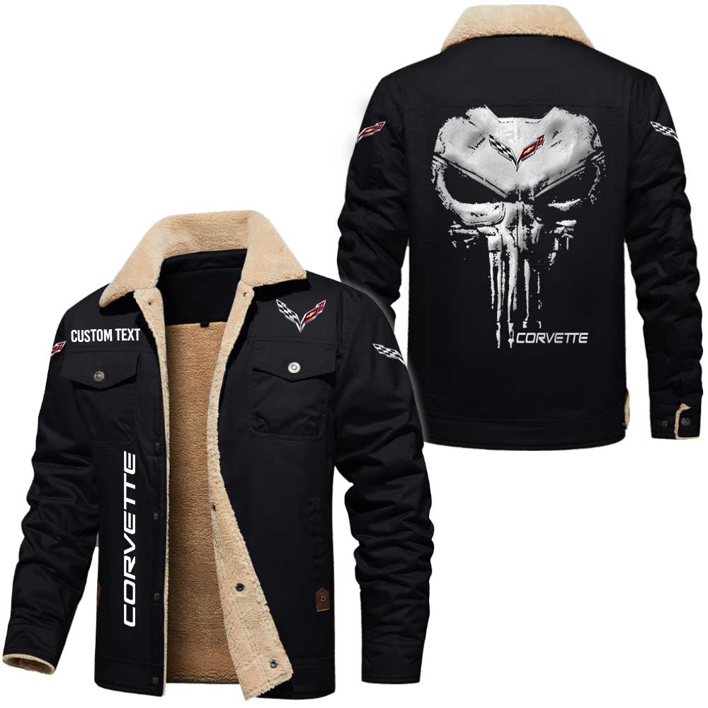 Corvette Logo Skull Design Custom Text Cargo Fleece Lined Cotton Jacket